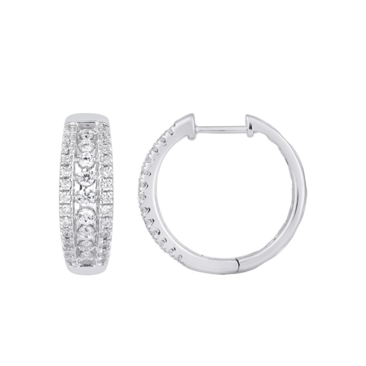 14K WHITE GOLD 1CT ROUND DIAMOND LADIES HOOPS EARRINGS