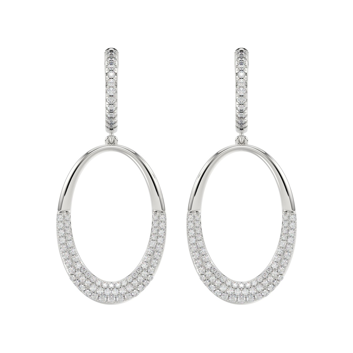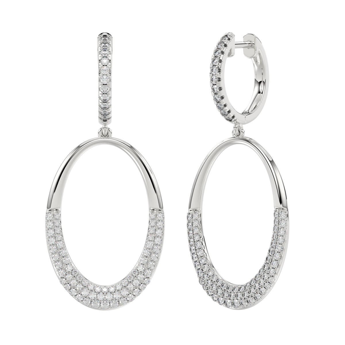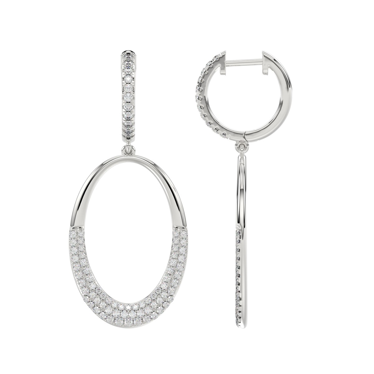 14K WHITE GOLD 1CT ROUND DIAMOND LADIES HOOPS EARRINGS