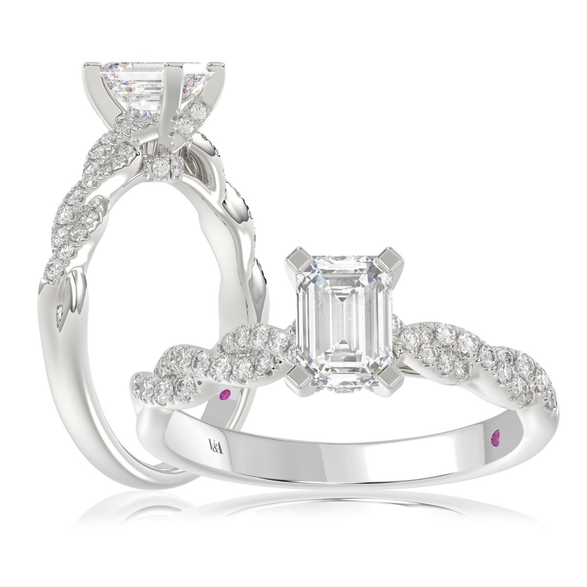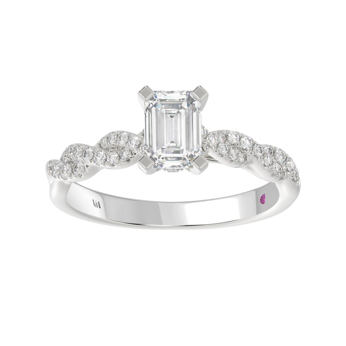 14K WHITE GOLD 1CT ROUND/EMERALD DIAMOND LADIES FASHION RING(CENTER STONE EMERALD DIAMOND 3/4CT)