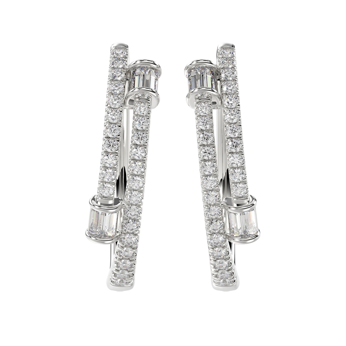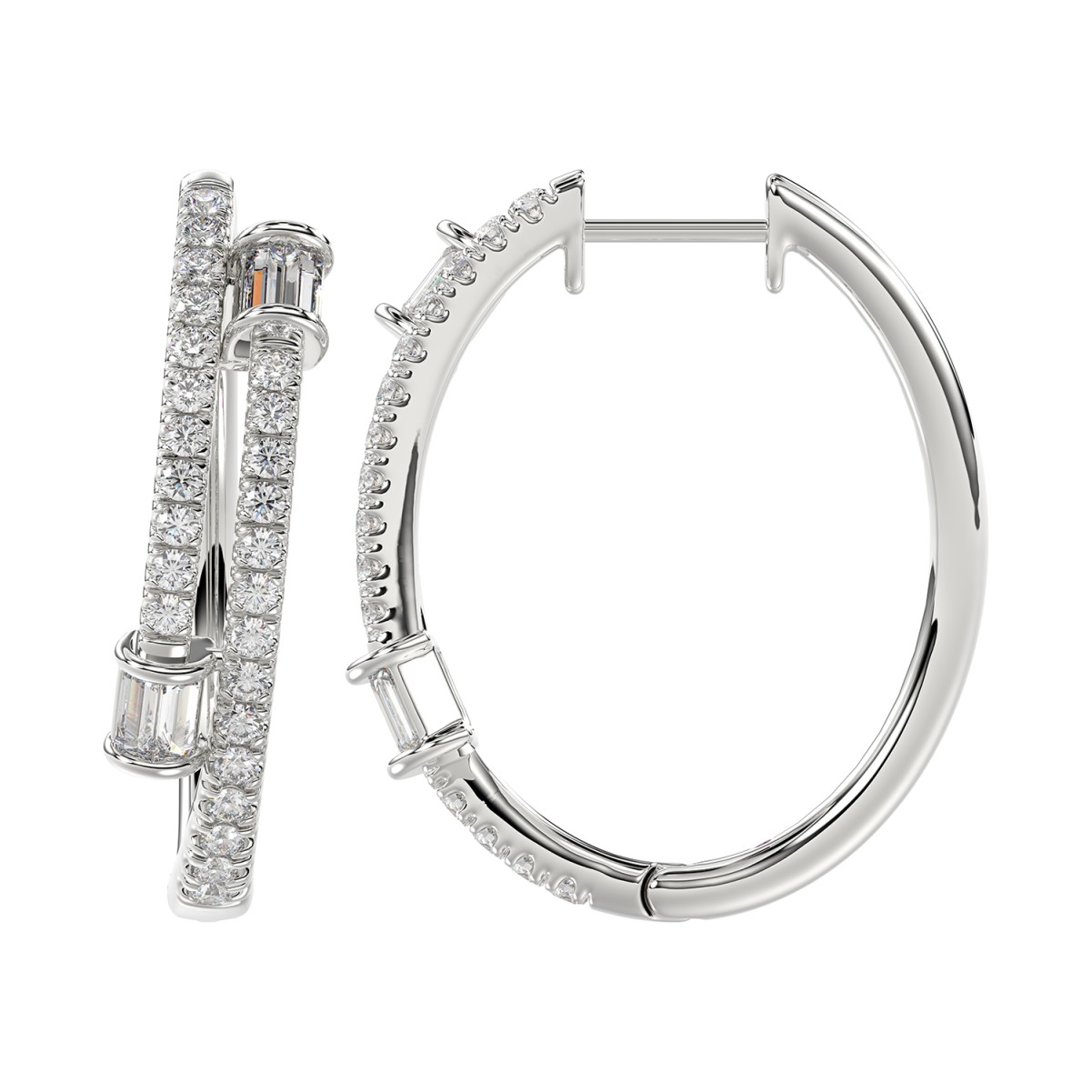 14K WHITE GOLD 3/4CT ROUND/BAGUETTE DIAMOND LADIES HOOPS EARRINGS