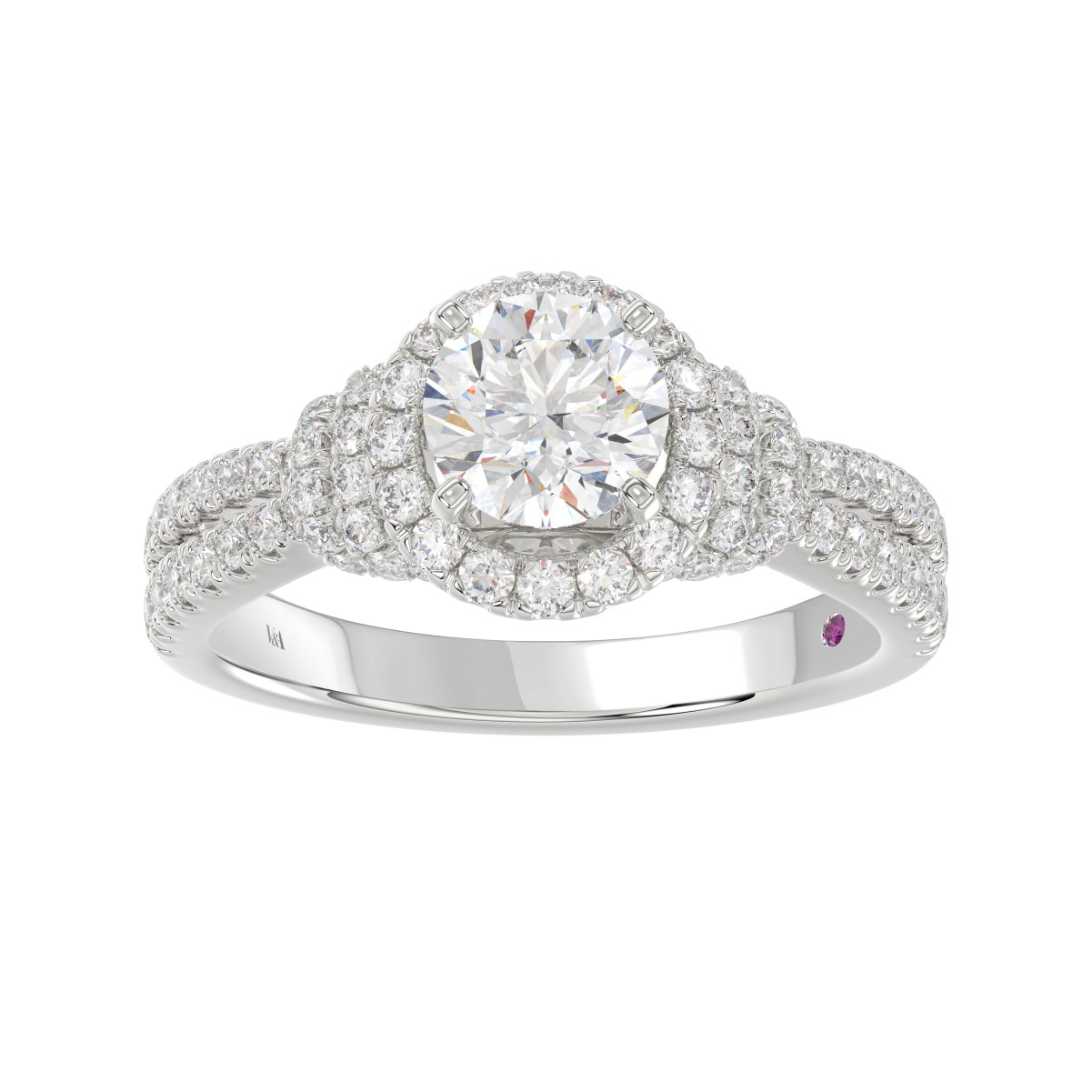 14K WHITE GOLD 3/4CT ROUND DIAMOND LADIES RING(CENTER STONE MOUNT ROUND DIAMOND 1CT)