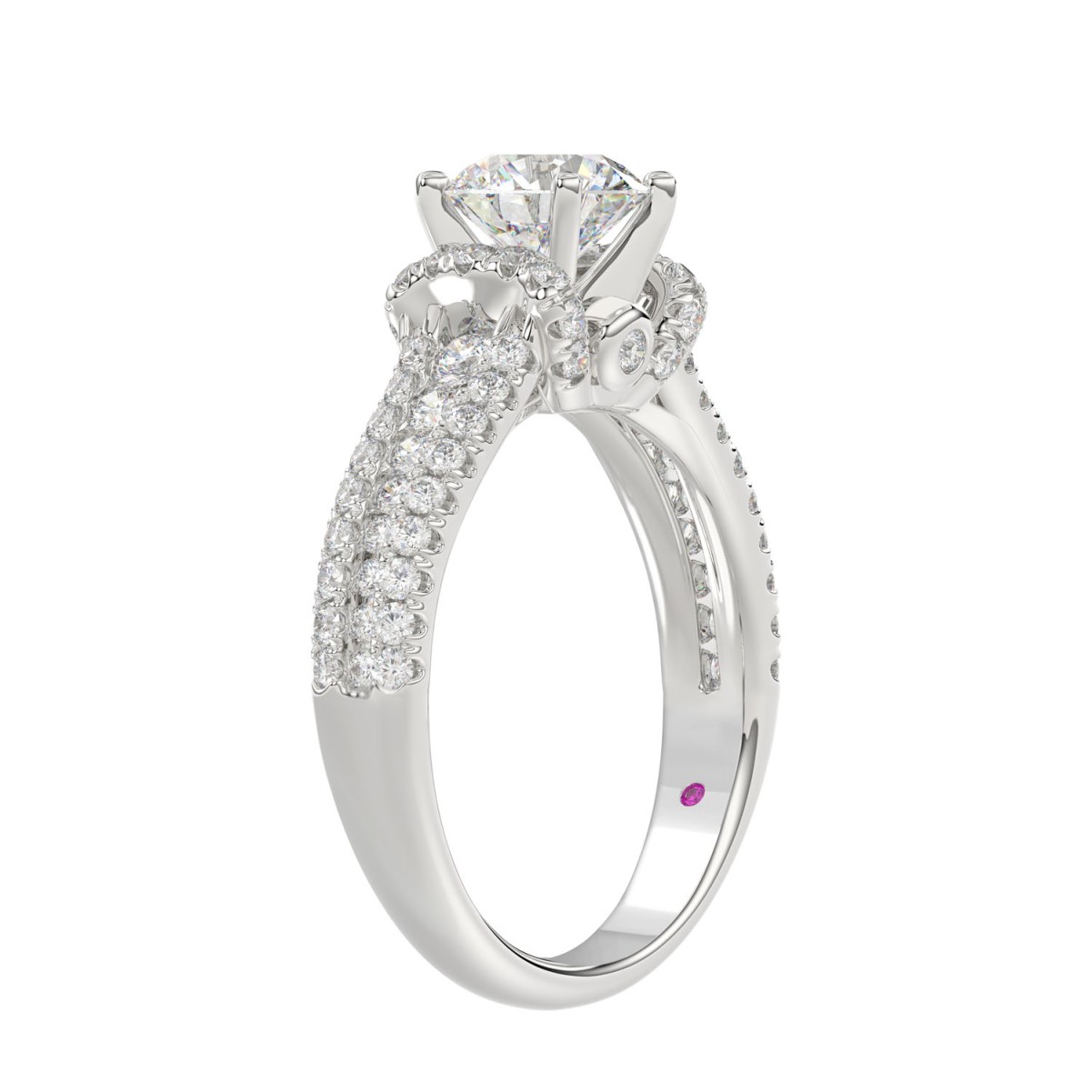 14K WHITE GOLD 3/4CT ROUND DIAMOND LADIES RING(CENTER STONE MOUNT ROUND DIAMOND 1CT)