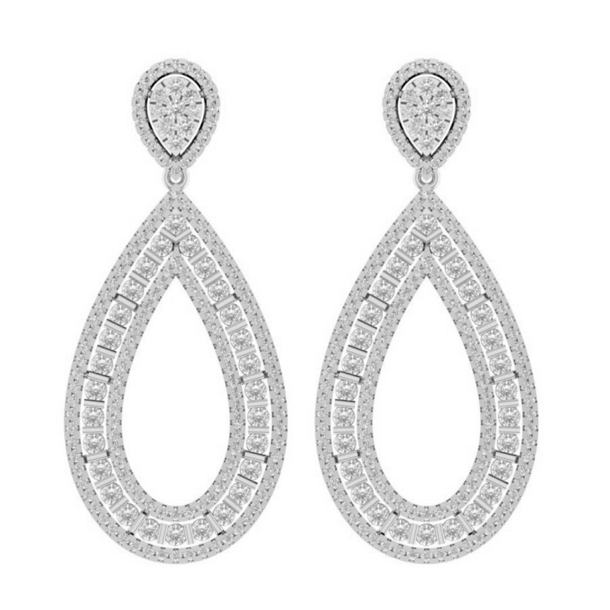 14K WHITE GOLD 3CT ROUND DIAMOND LADIES EARRINGS