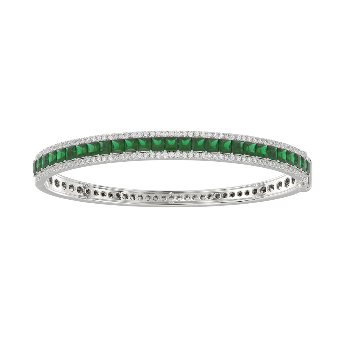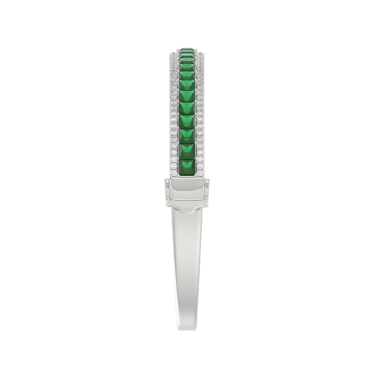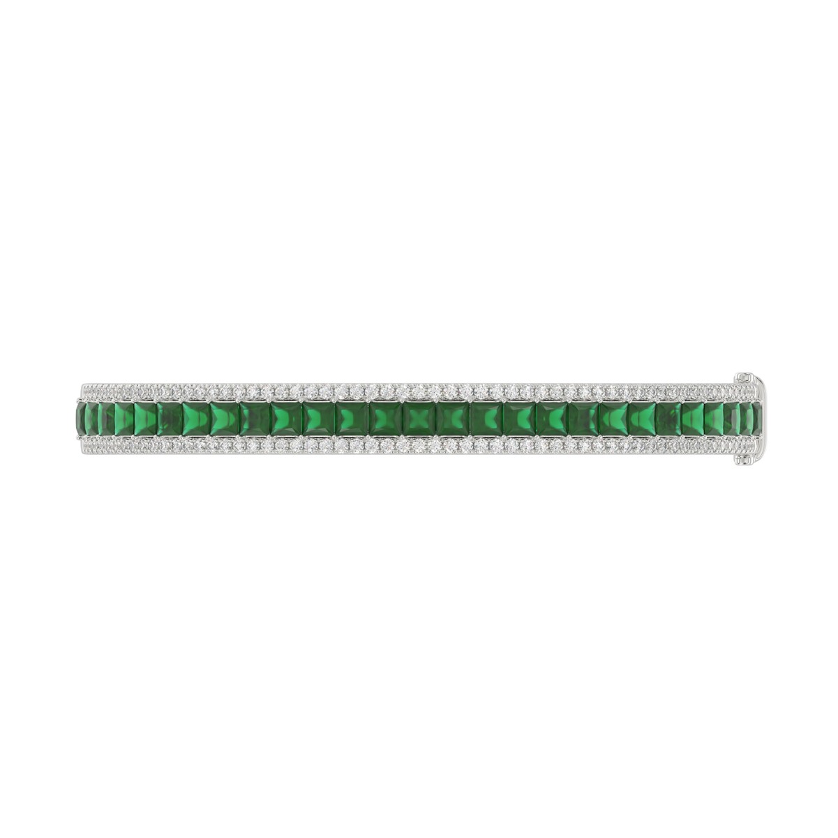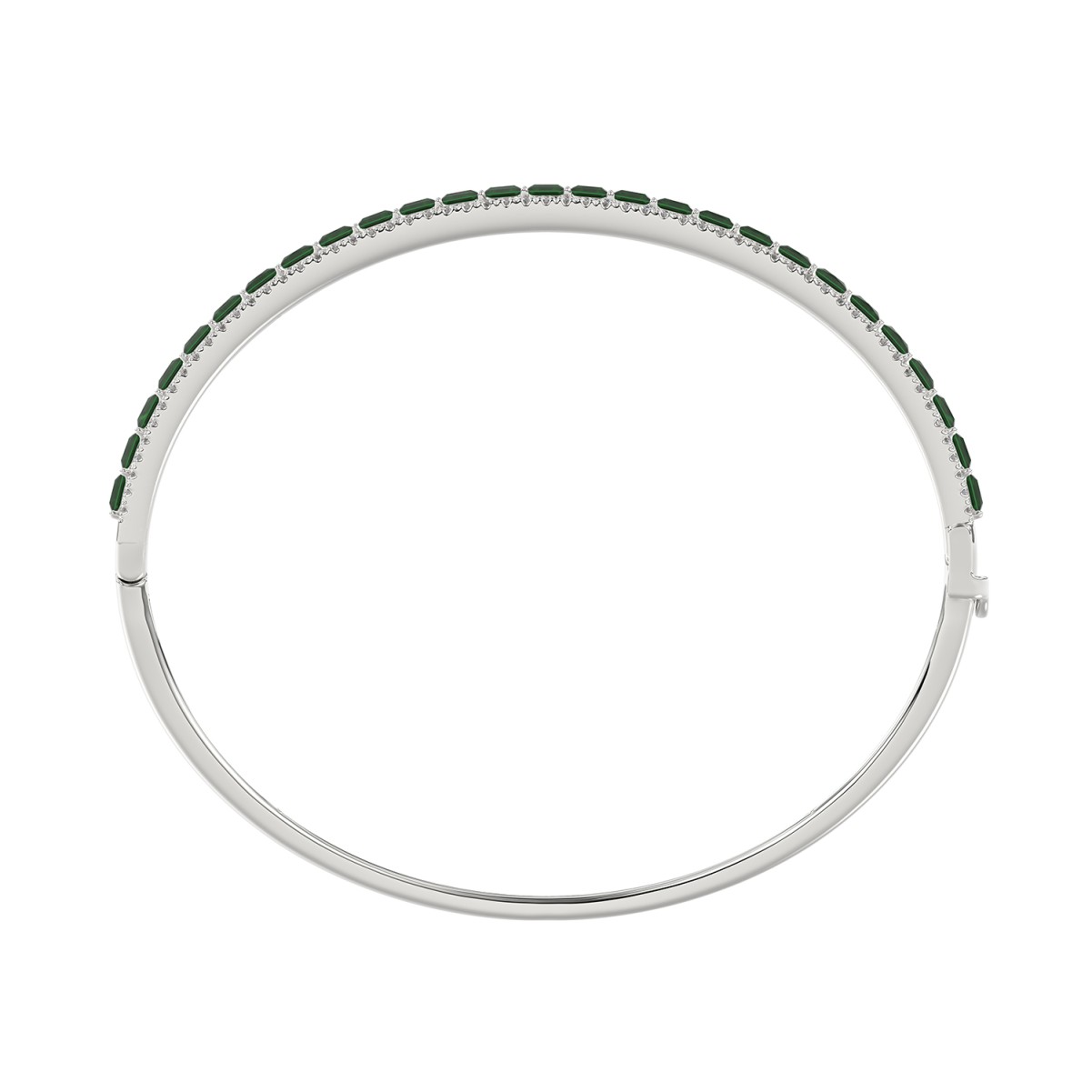 14K WHITE GOLD 4 1/3CT ROUND/PRINCESS DIAMOND LADIES BANGLE(COLOR STONE PRINCESS GREEN EMERALD DIAMOND 3 1/4CT)