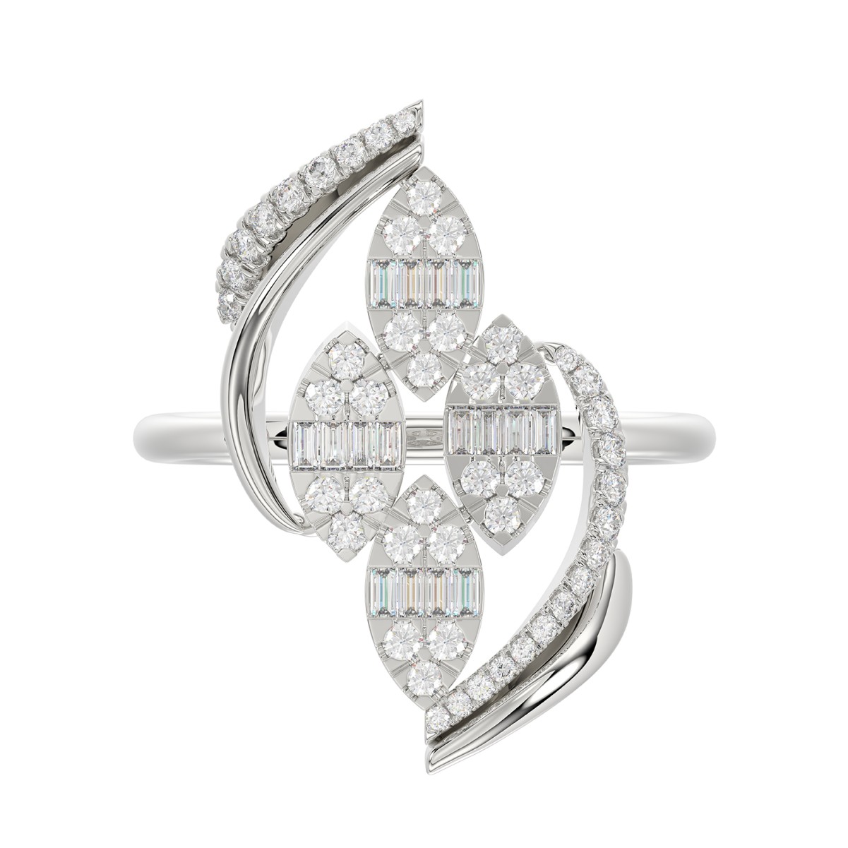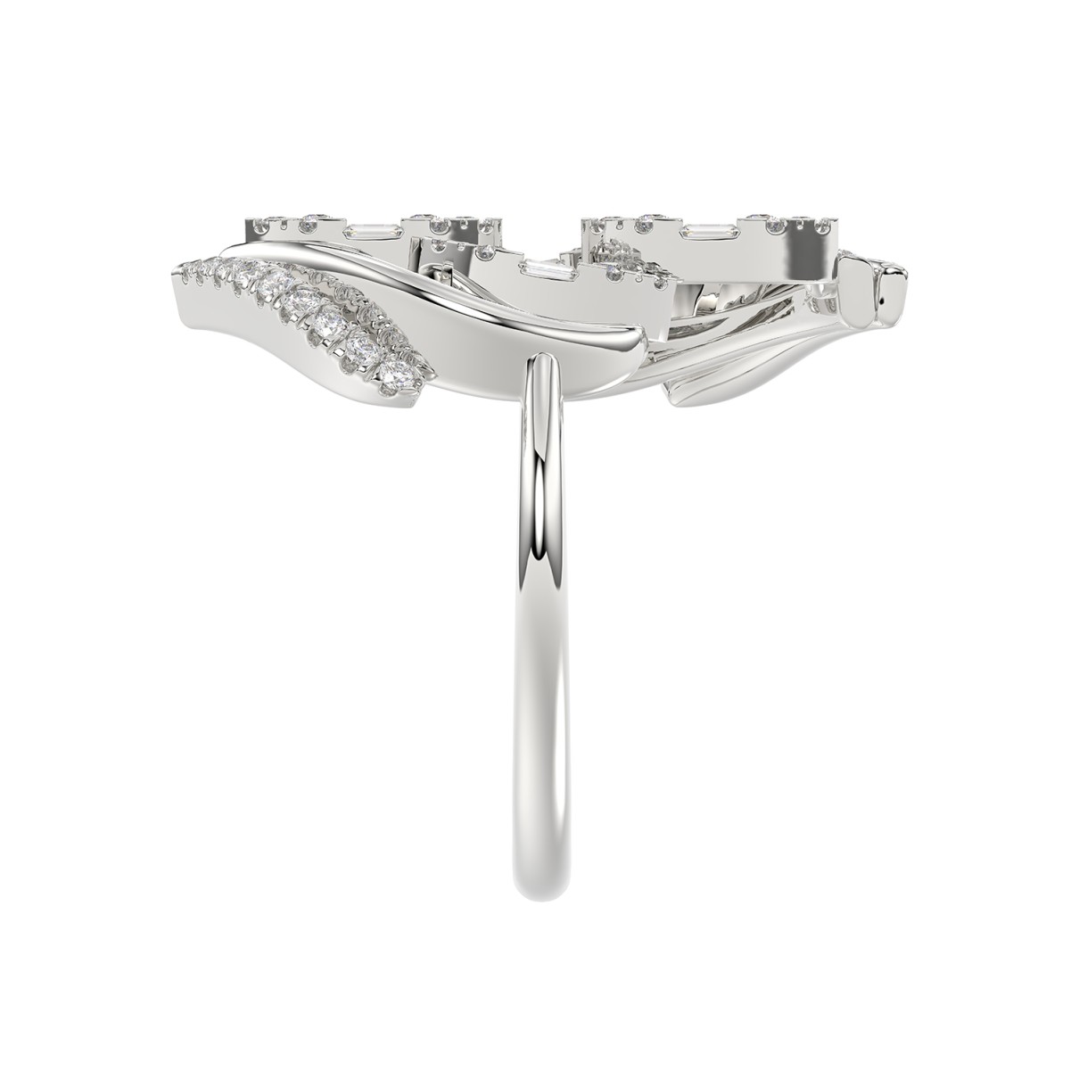 14K WHITE GOLD 5/8CT ROUND/BAGUETTE DIAMOND LADIES FASHION RING