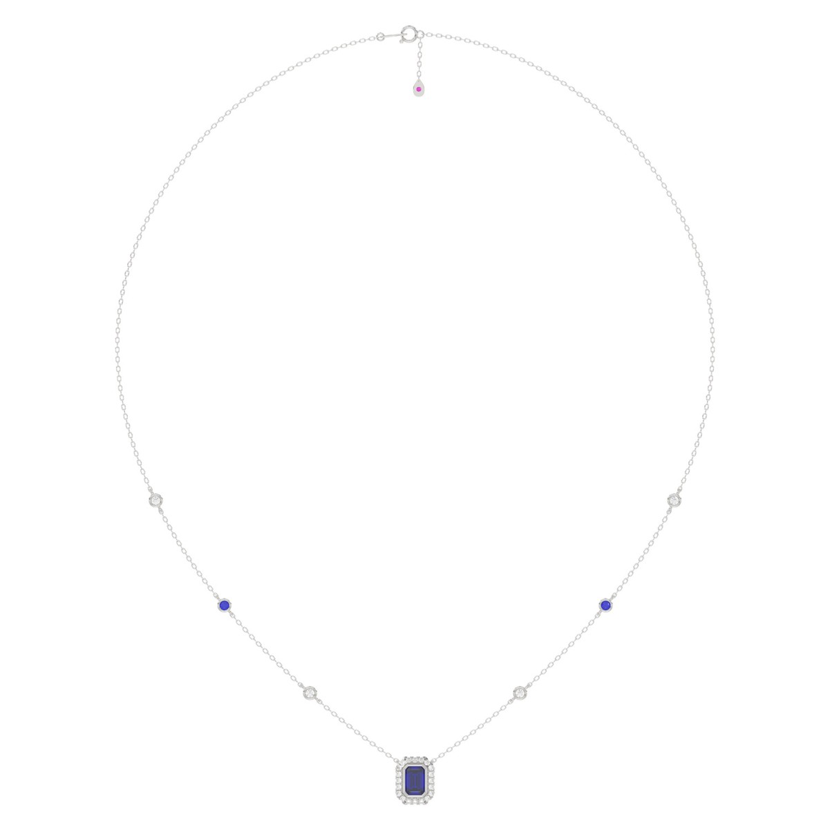 14K WHITE GOLD 7/8CT ROUND/EMERALD BLUE SAPPHIRE DIAMOND LADIES NECKLACE