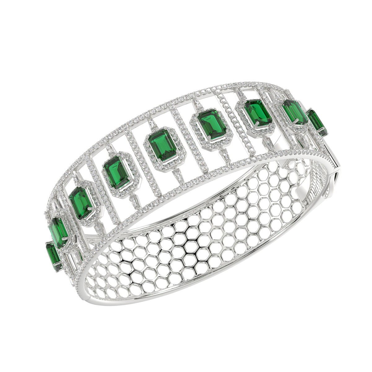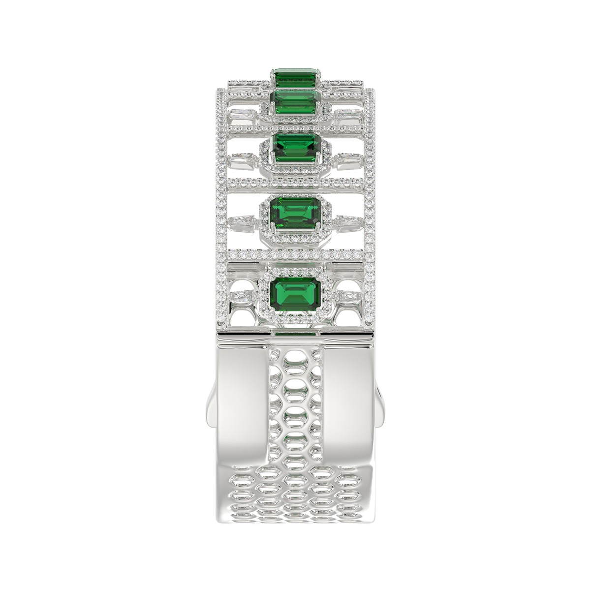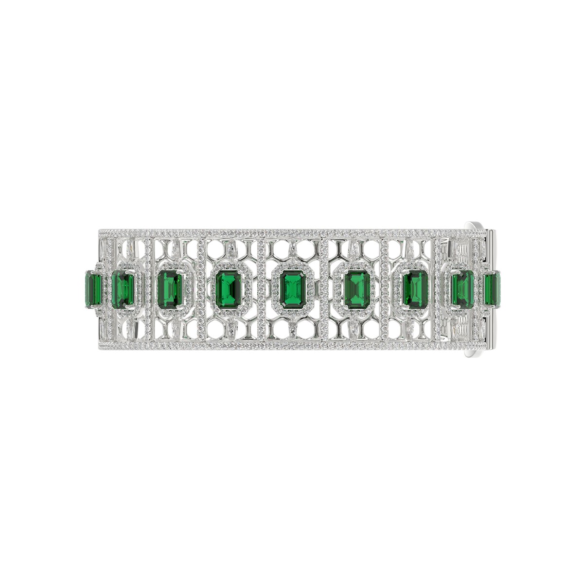 14K WHITE GOLD 8CT ROUND/BAGUETTE/EMERALD DIAMOND LADIES BANGLE(COLOR STONE GREEN EMERALD DIAMOND 4 3/4CT)