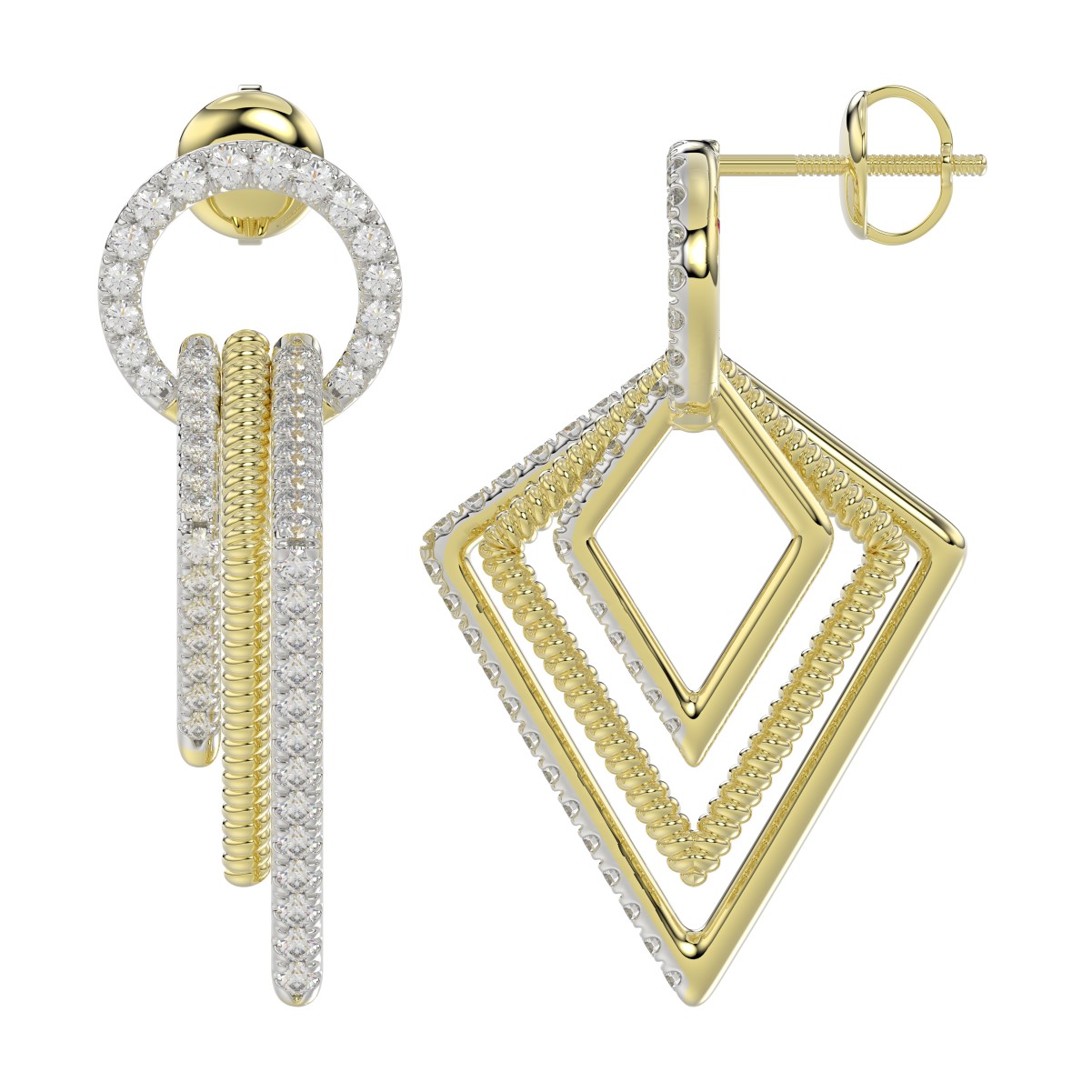 14K WHITE GOLD/YELLOW GOLD 1CT ROUND DIAMOND LADIES EARRINGS