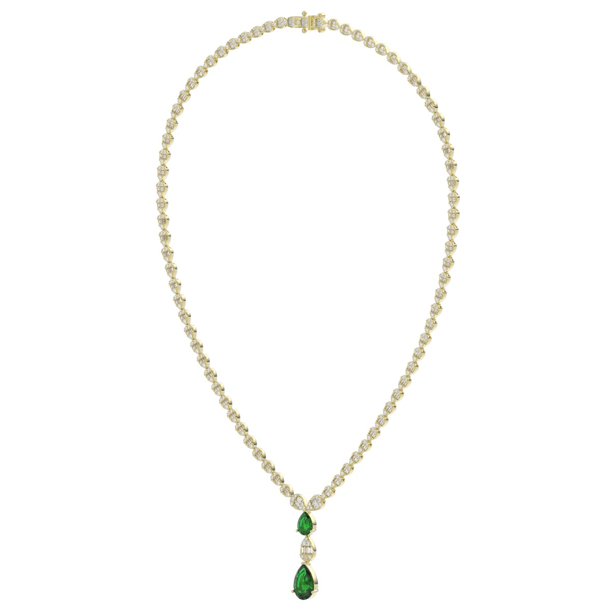 14K WHITE GOLD/YELLOW GOLD 5 3/4CT ROUND/BAGUETTE/PEAR DIAMOND LADIES NECKLACE
