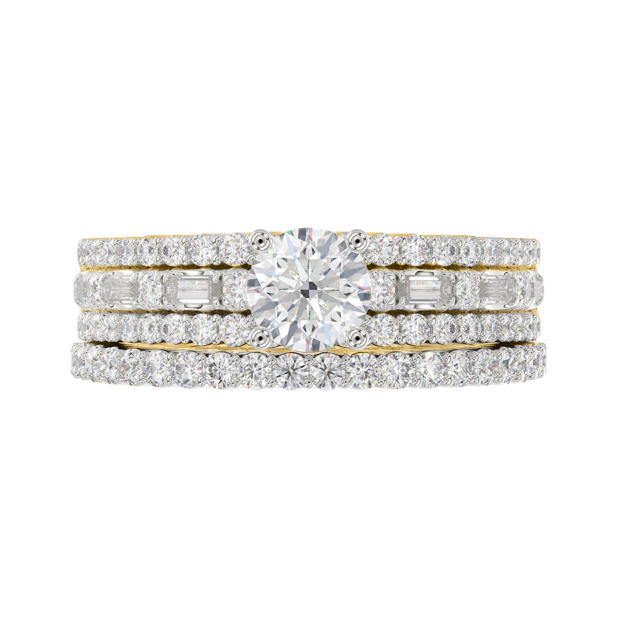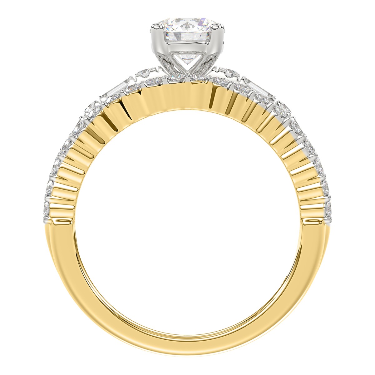 14K YELLOW GOLD 1 1/2CT ROUND/BAGUETTE DIAMOND LADIES RING(CENTER STONE ROUND DIAMOND 7/8CT)