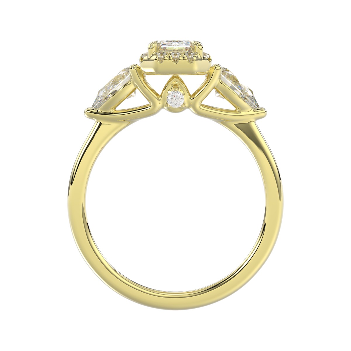 14K YELLOW GOLD 1 1/2CT ROUND/PEAR LADIES RING(CENTER STONE EMERALD DIAMOND 3/4 CT / 2 SIDE STONE PEAR DIAMOND 1/3 CT)