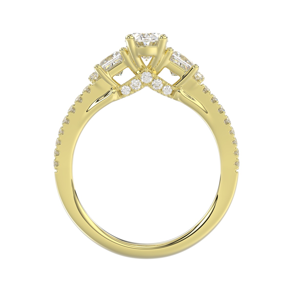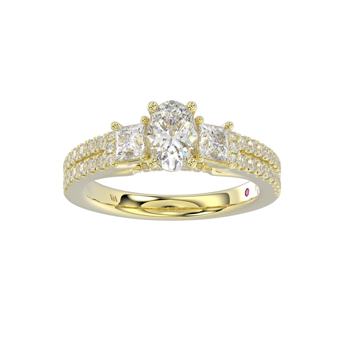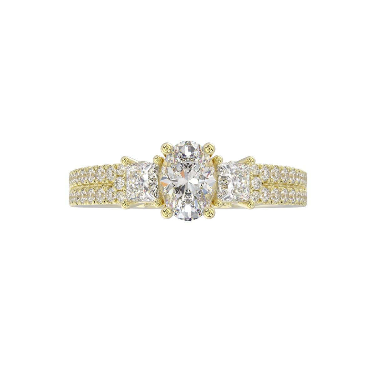 14K YELLOW GOLD 1 1/2CT ROUND/PRINCESS/OVAL DIAMOND LADIES RING( CENTER STONE OVAL DIAMOND 3/4 CT / 2 SIDE STONE PRINCESS DIAMOND 1/2CT)