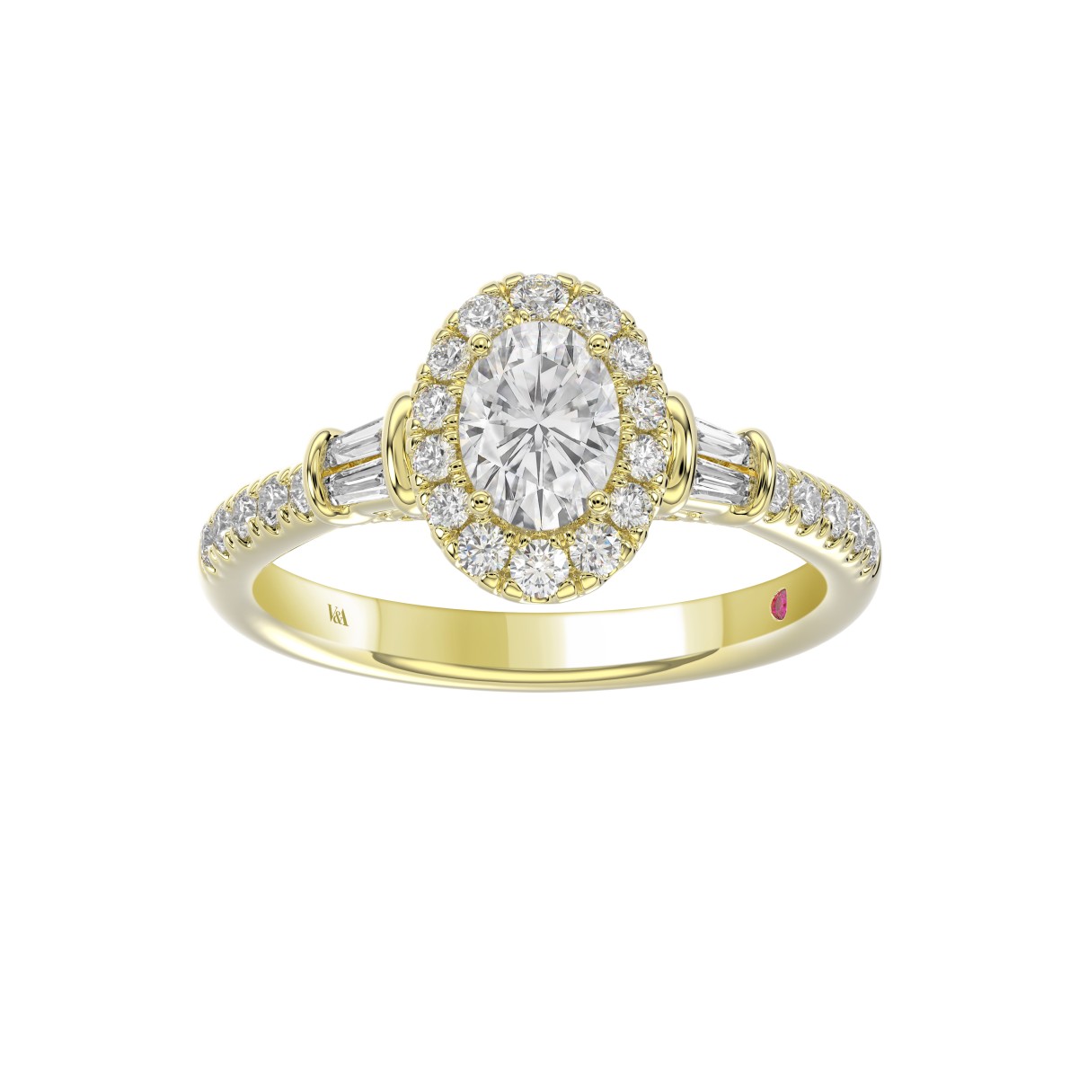 14K YELLOW GOLD 1 1/4CT ROUND/BAGUETTE/OVAL DIAMOND LADIES RING(CENTER STONE OVAL DIAMOND 3/4CT)