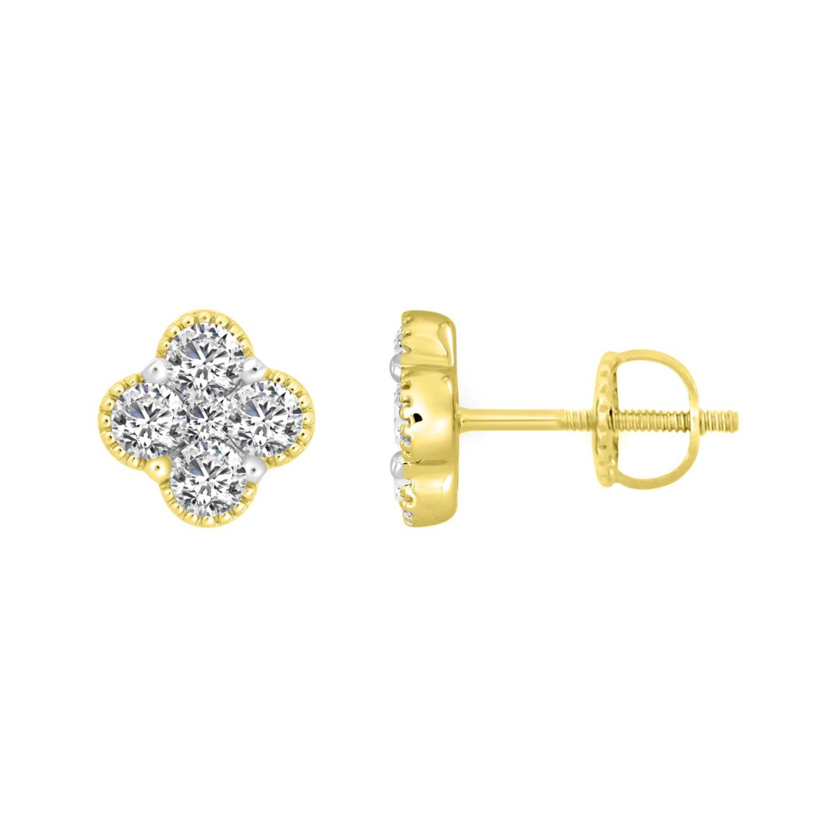 14K YELLOW GOLD 1 1/5CT ROUND DIAMOND LADIES EARRINGS