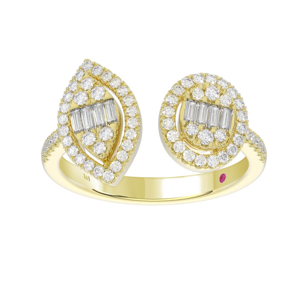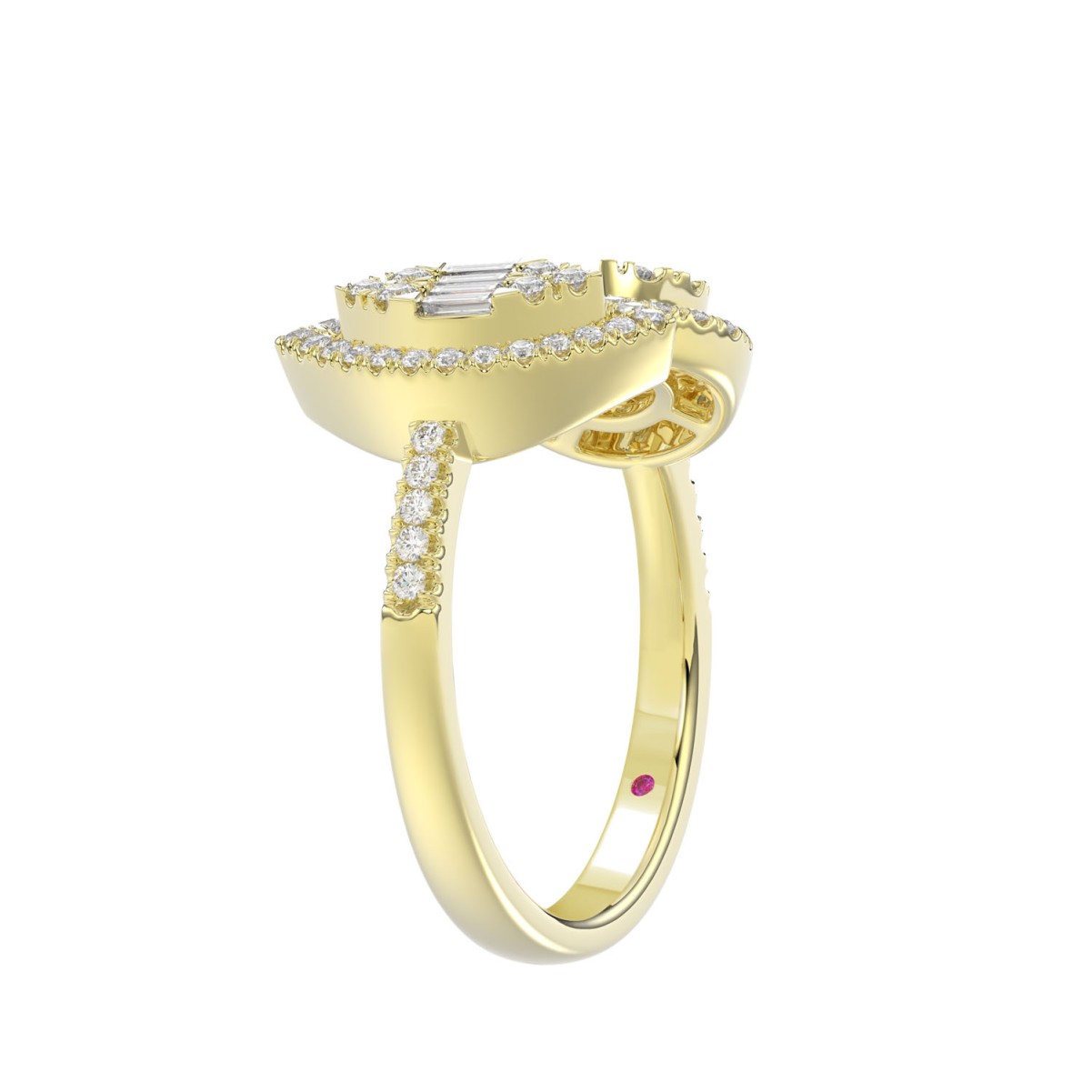 14K YELLOW GOLD 1/2CT ROUND/BAGUETTE DIAMOND LADIES FASHION RING
