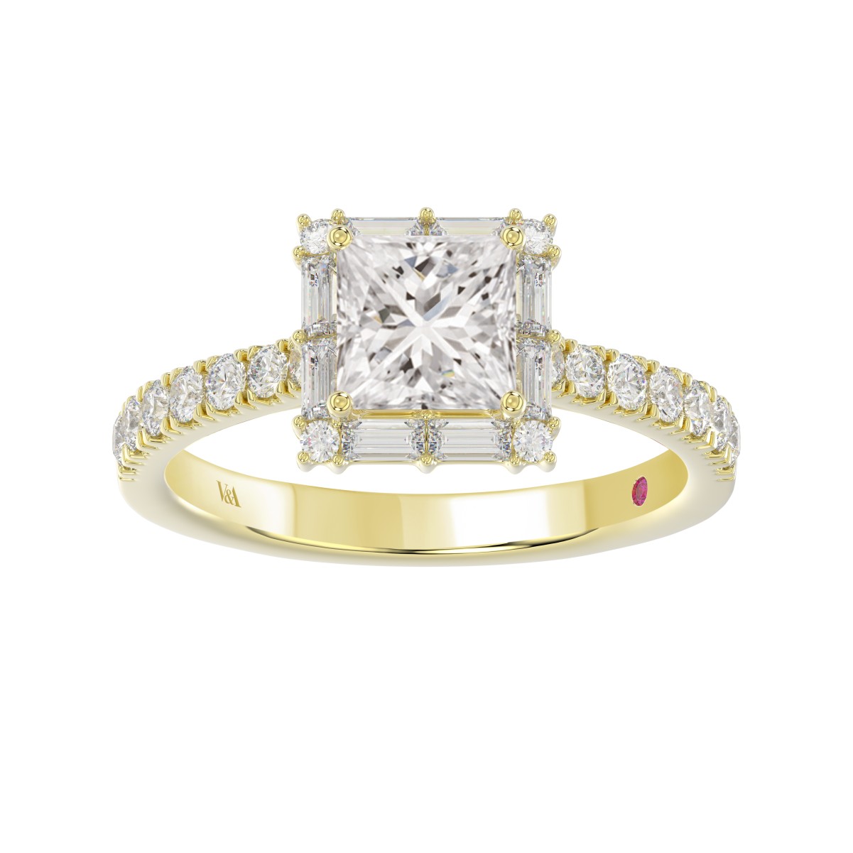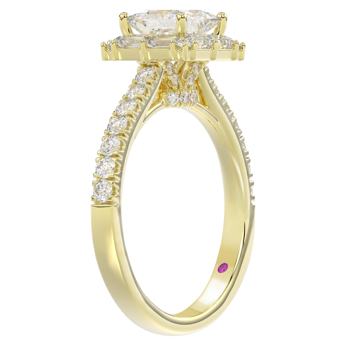 14K YELLOW GOLD 1/2CT ROUND/BAGUETTE DIAMOND LADIES SEMI MOUNT RING(CENTER STONE MOUNT PRINCESS DIAMOND 1CT)