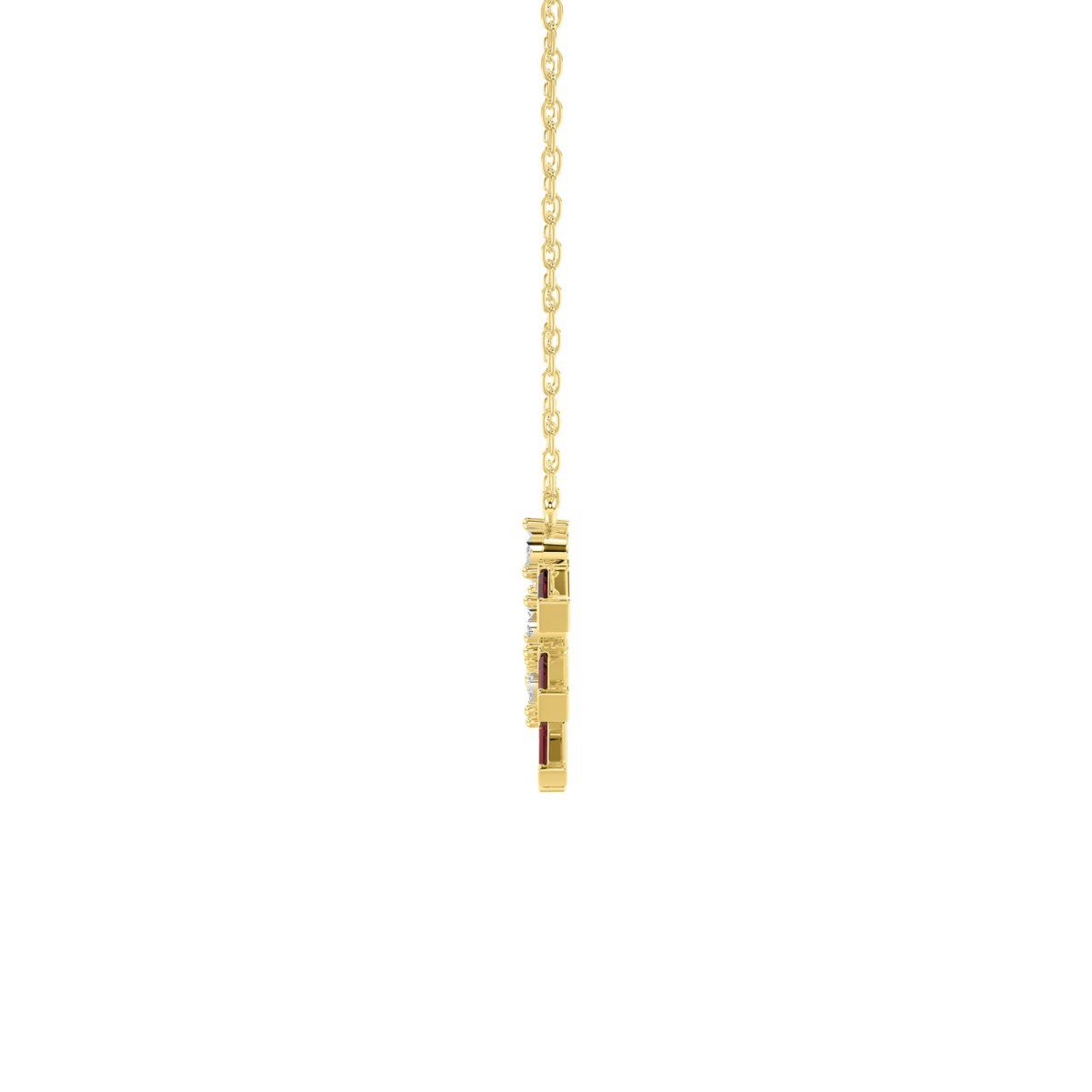 14K YELLOW GOLD 1/2CT ROUND/BAGUETTE/PINK SAPPHIRE DIAMOND LADIES NECKLACE (RUBY DIAMOND 3/8CT)