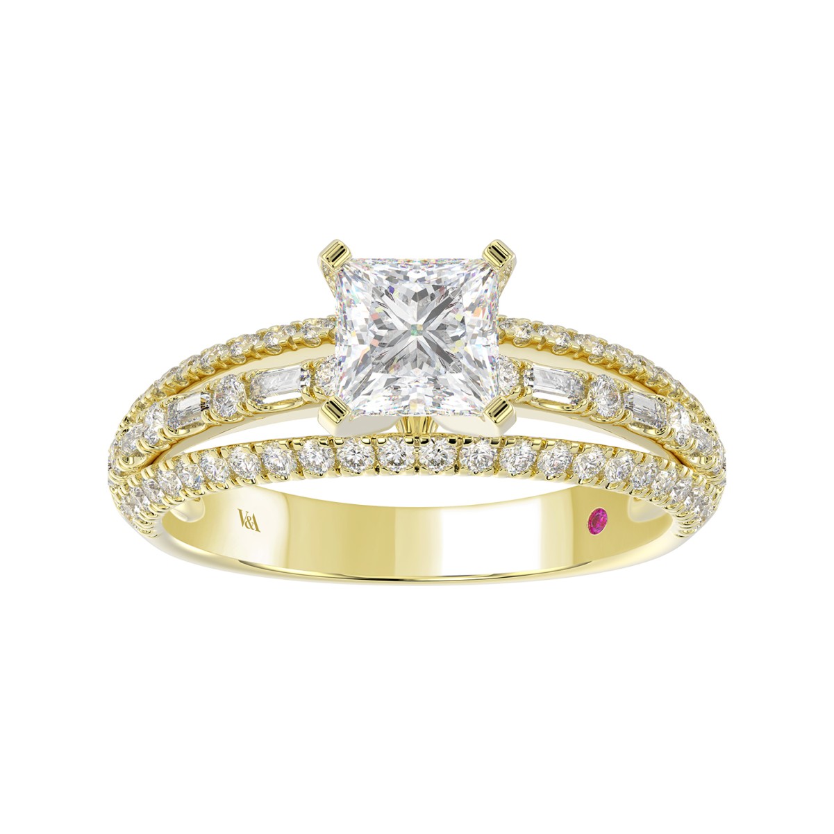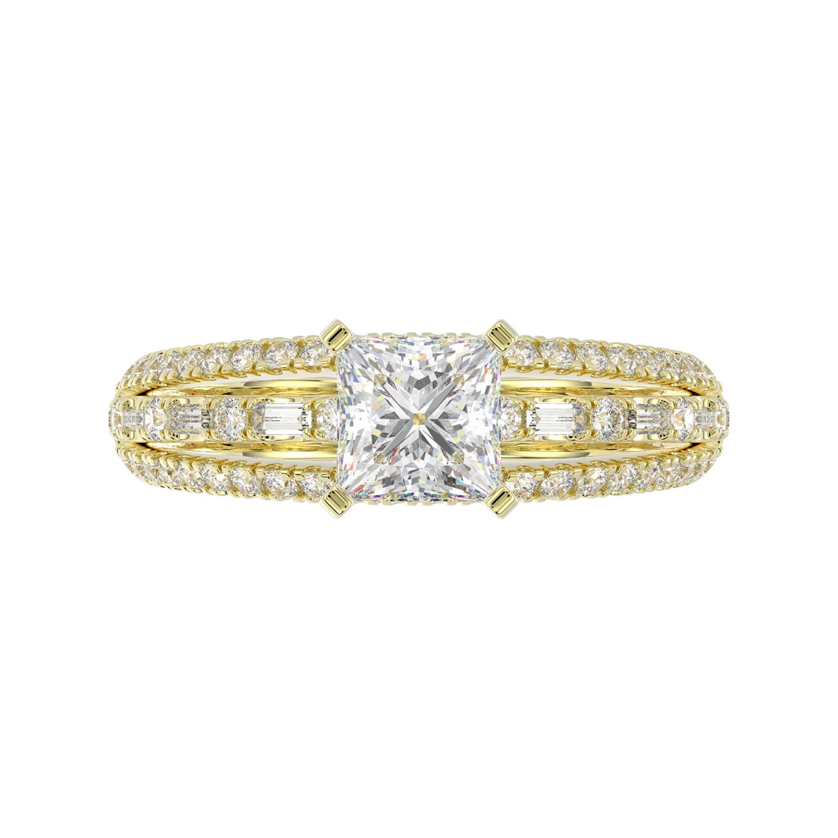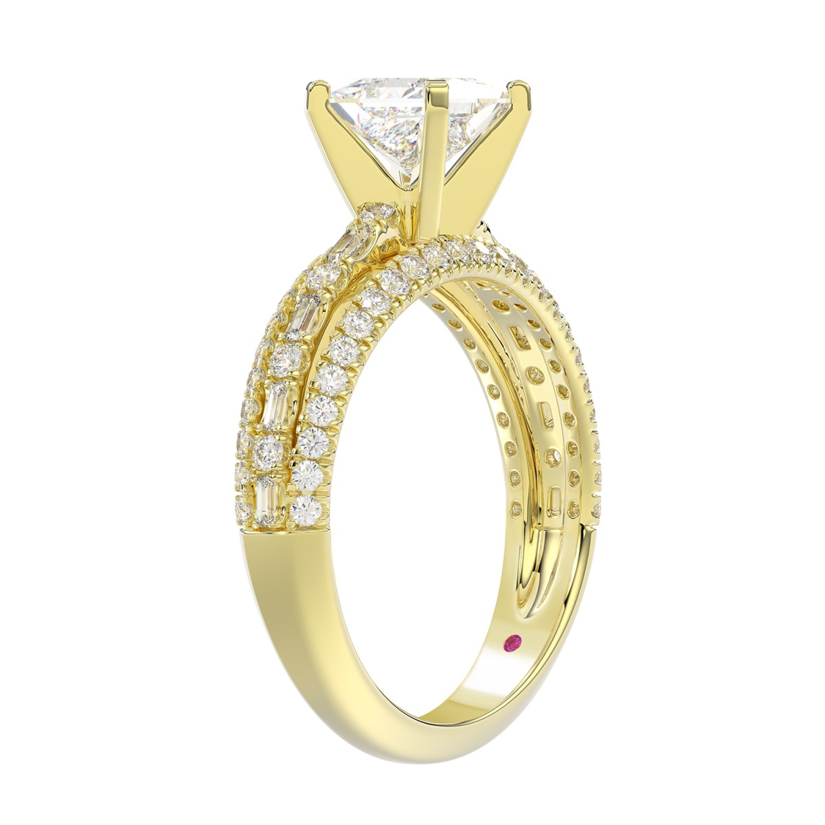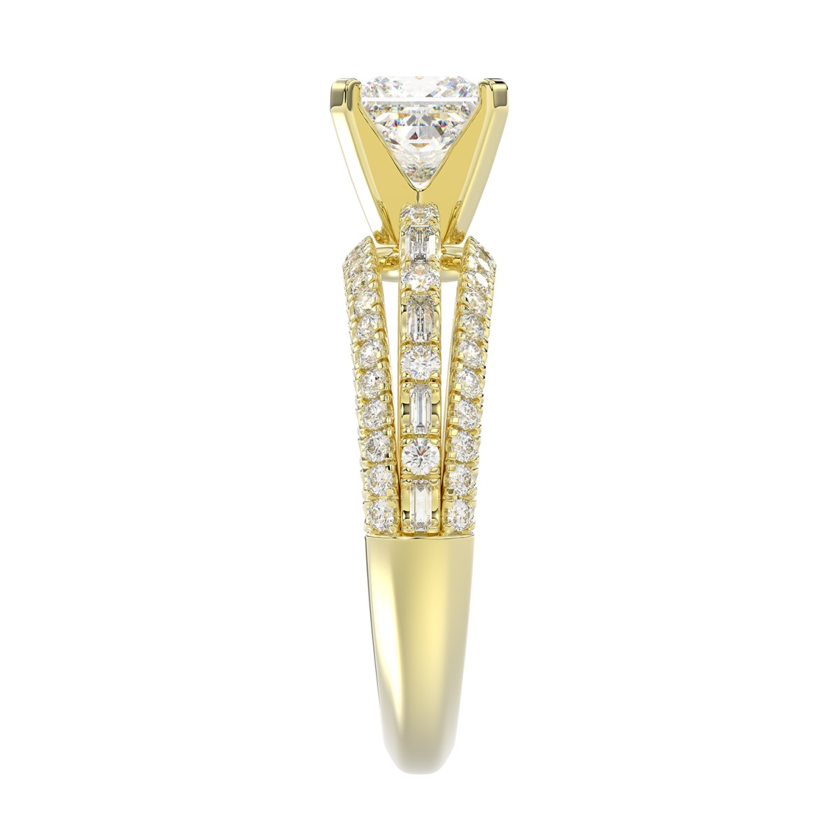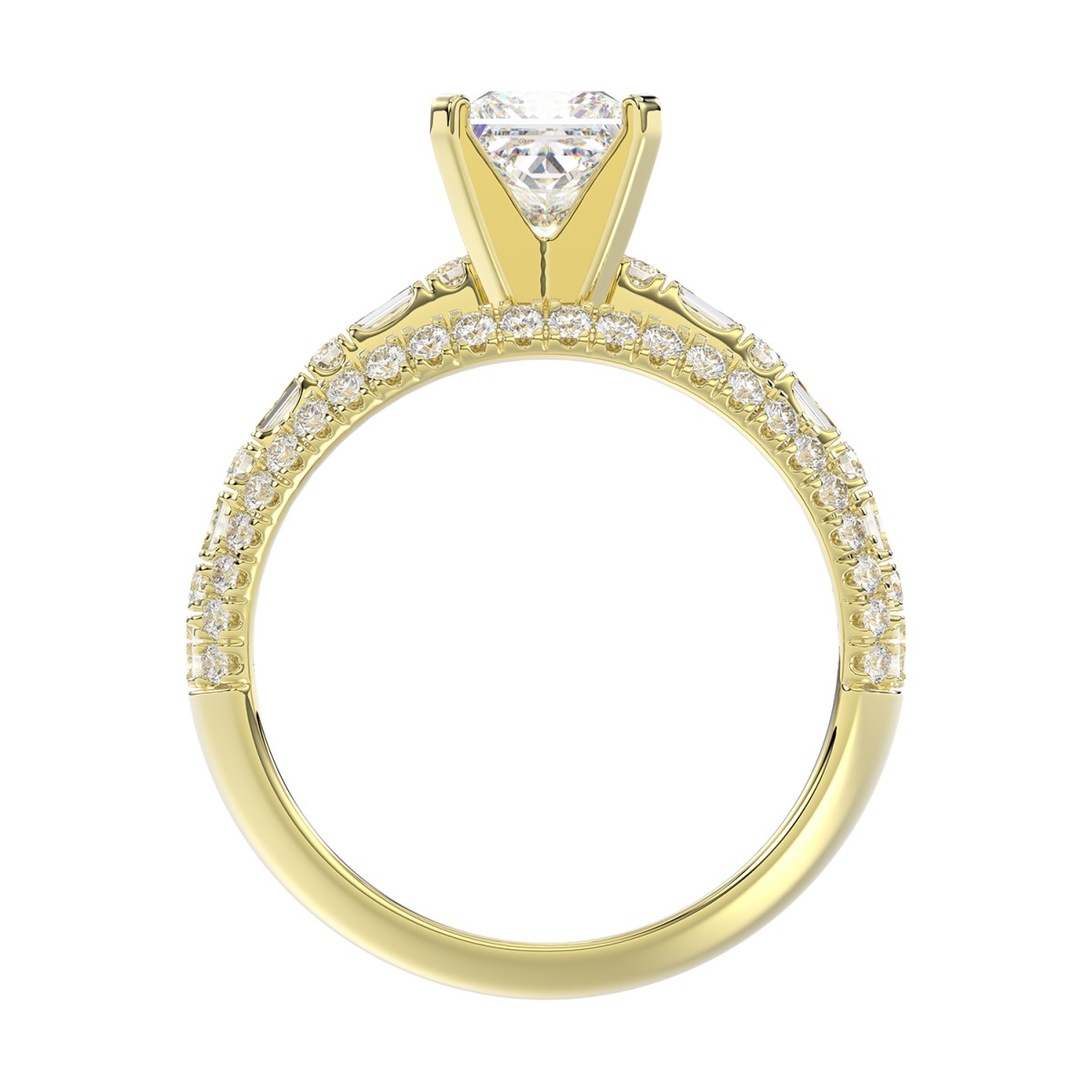 14K YELLOW GOLD 1/2CT ROUND/BAGUETTE/PRINCESS DIAMOND LADIES SEMI MOUNT RING(CENTER STONE MOUNT PRINCESS DIAMOND 1CT)