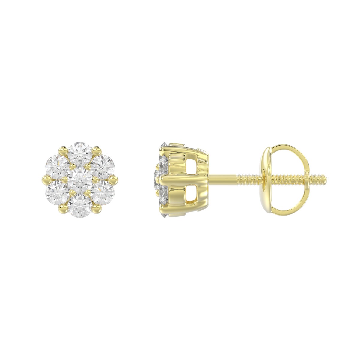 14K YELLOW GOLD 1/2CT ROUND DIAMOND LADIES FLOWER EARRINGS
