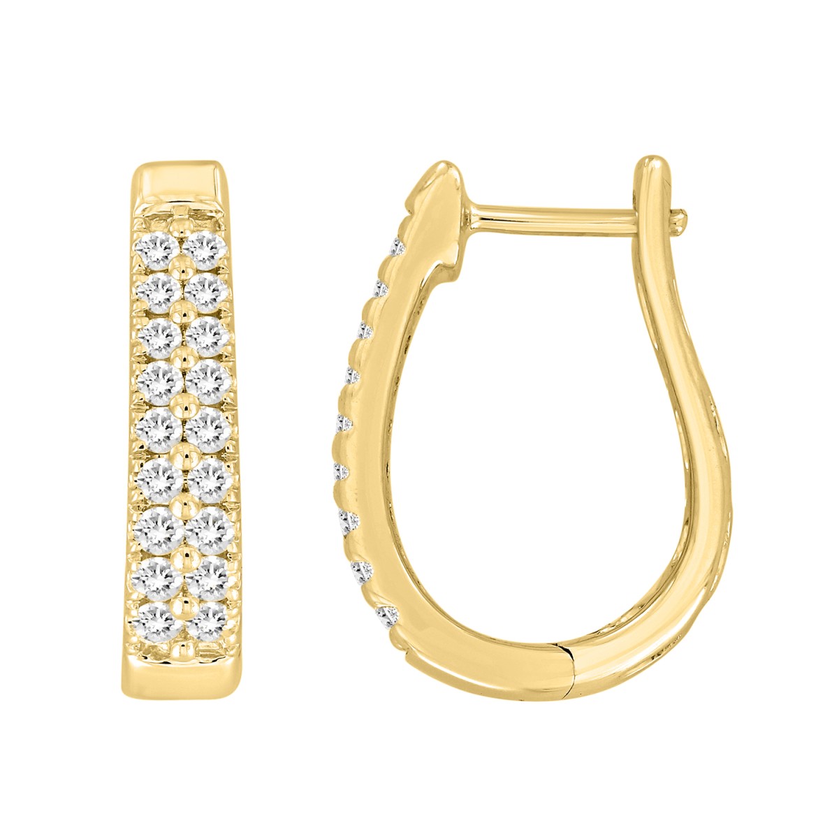 14K YELLOW GOLD 1/2CT ROUND DIAMOND LADIES HOOP EARRINGS