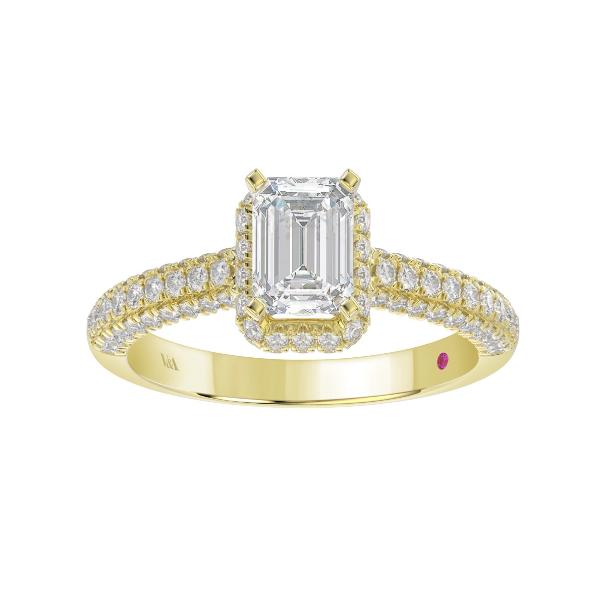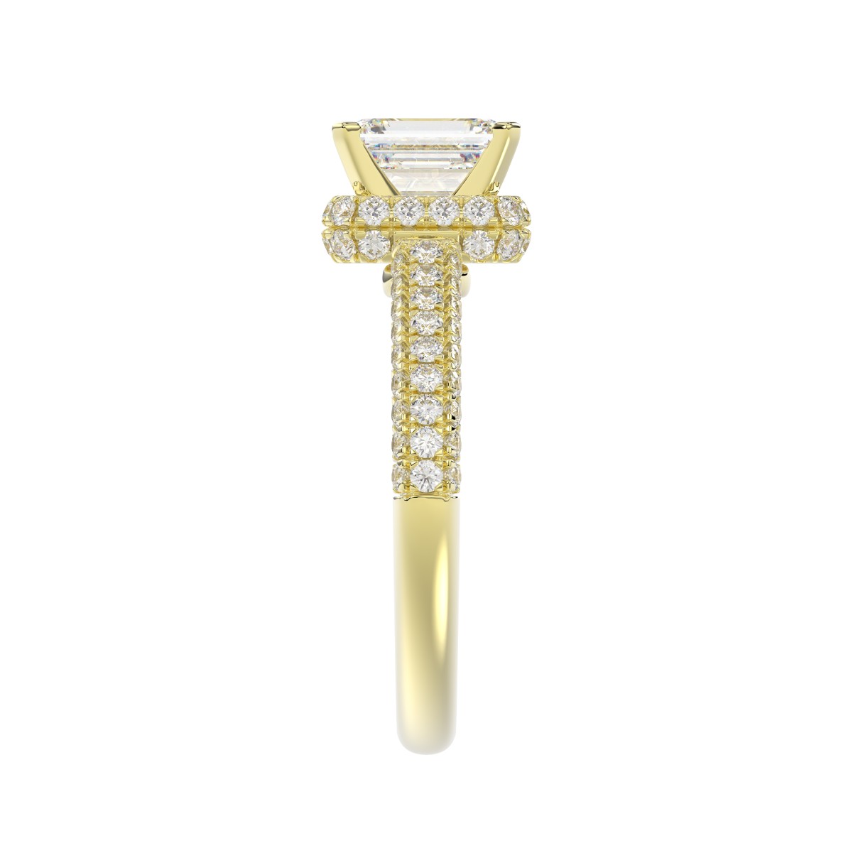 14K YELLOW GOLD 1/2CT ROUND/EMERALD DIAMOND LADIES SEMI MOUNT RING(CENTER STONE MOUNT EMERALD DIAMOND 1CT)