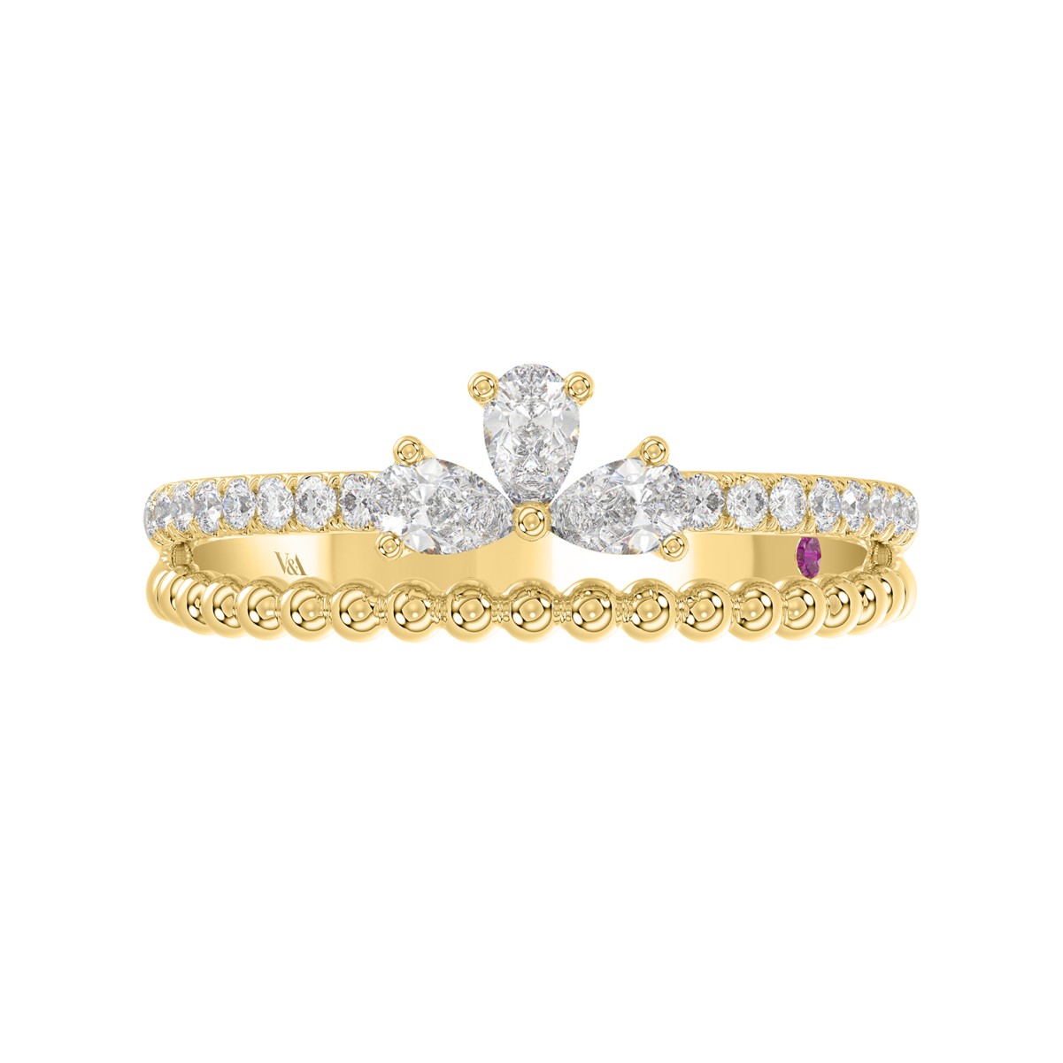 14K YELLOW GOLD 1/2CT ROUND/PEAR DIAMOND LADIES RING