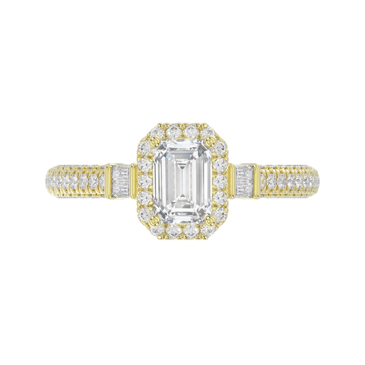 14K YELLOW GOLD 1 3/8CT ROUND/BAGUETTE/EMERALD DIAMOND LADIES RING(CENTER STONE EMERALD DIAMOND 3/4CT)