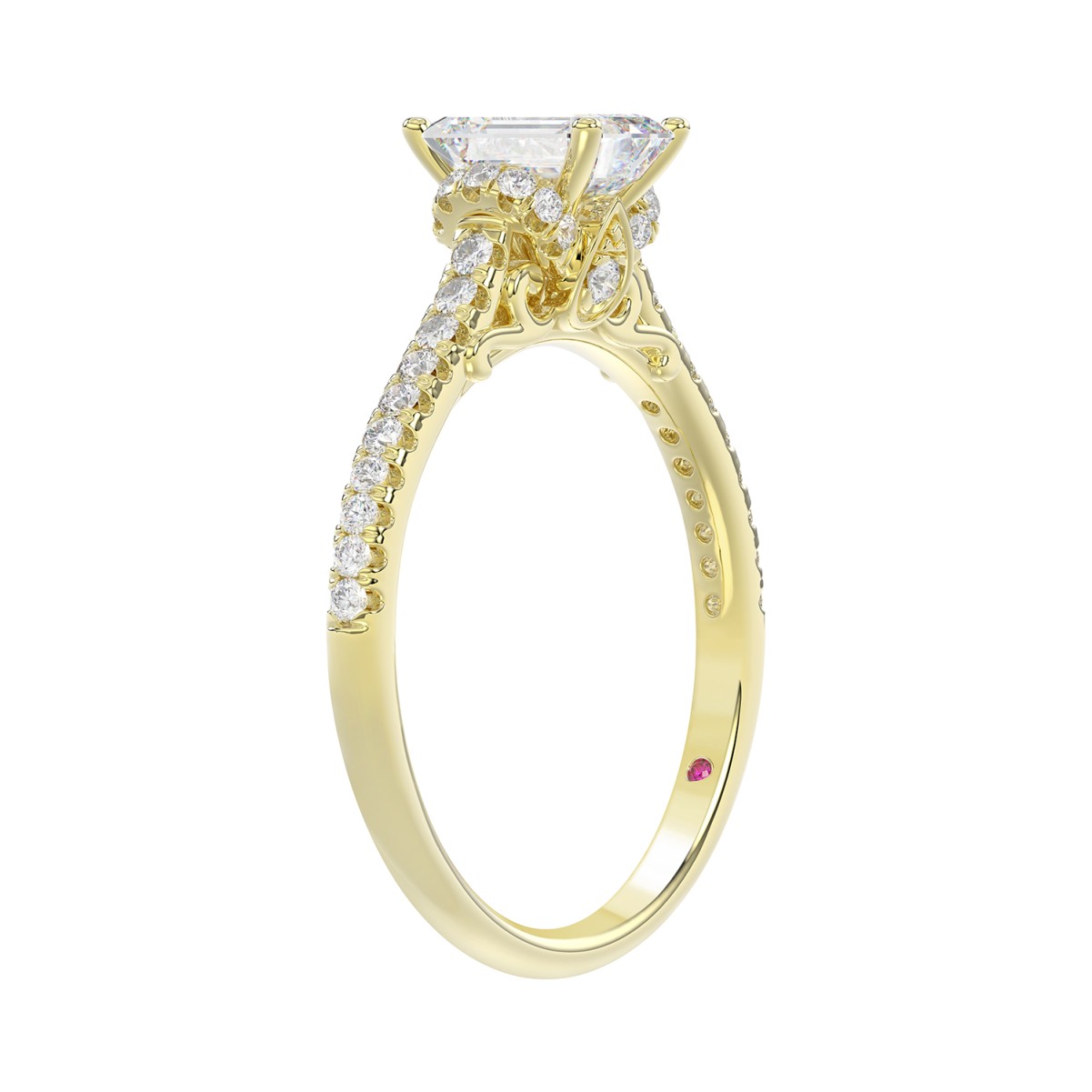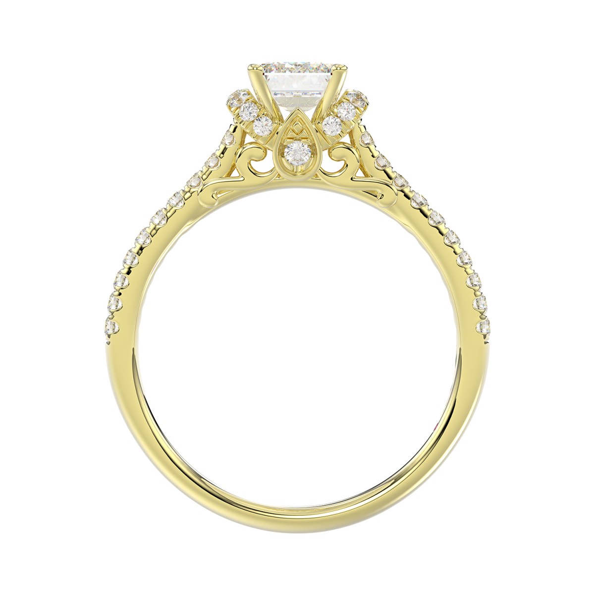 14K YELLOW GOLD 1/4CT ROUND DIAMOND LADIES SEMI MOUNT RING(CENTER STONE MOUNT EMERALD DIAMOND 1CT)