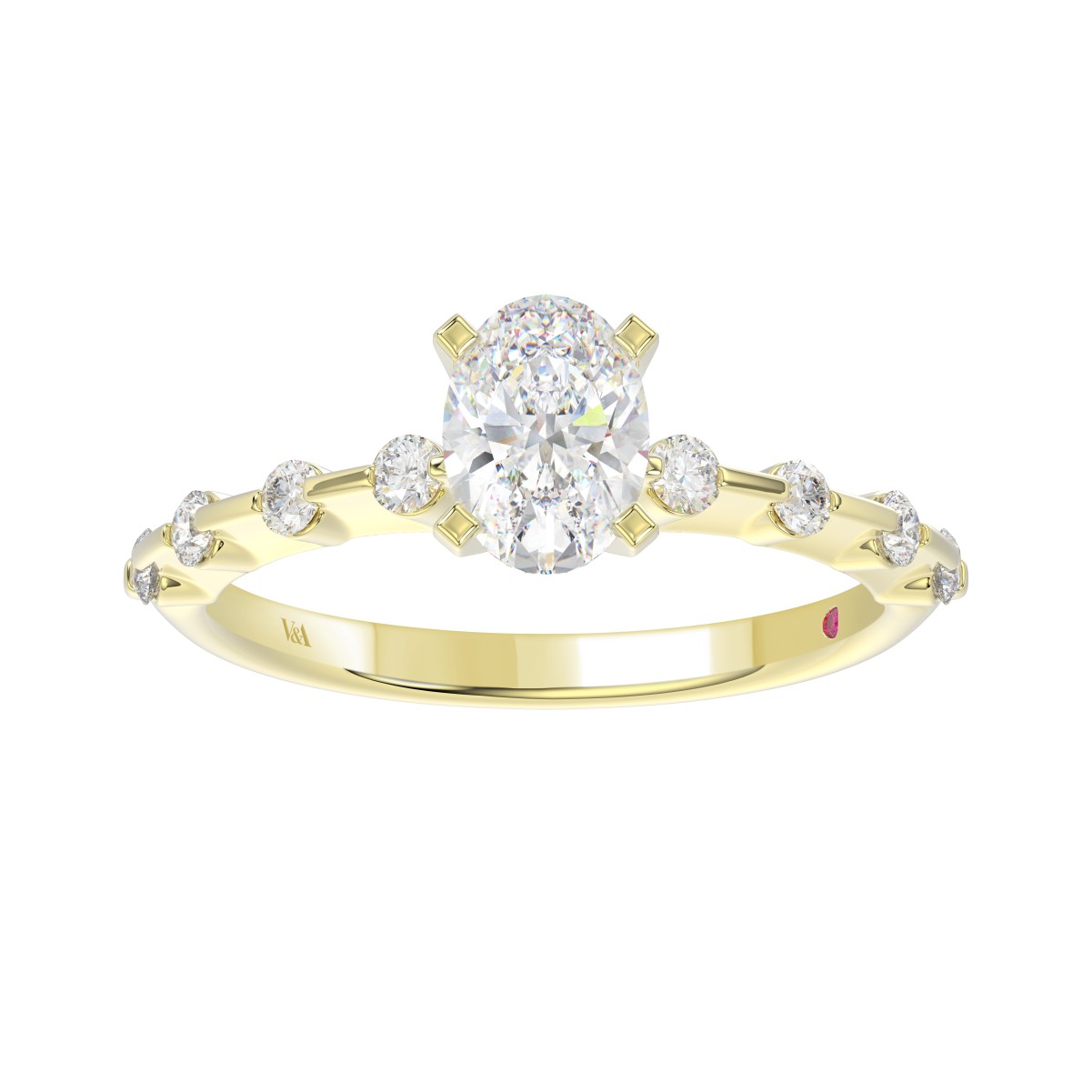 14K YELLOW GOLD 1/4CT ROUND DIAMOND LADIES SEMI MOUNT RING(CENTER STONE MOUNT OVAL DIAMOND 1CT)