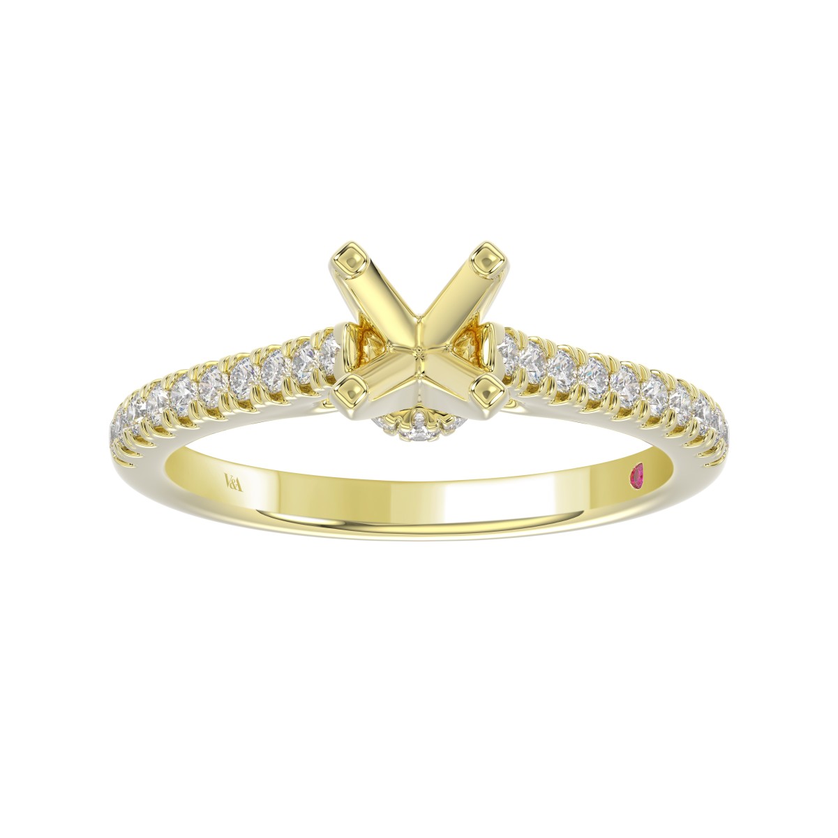 14K YELLOW GOLD 1/4CT ROUND DIAMOND LADIES SEMI MOUNT RING(CENTER STONE MOUNT ROUND DIAMOND 1CT)