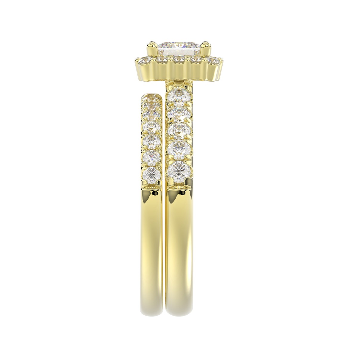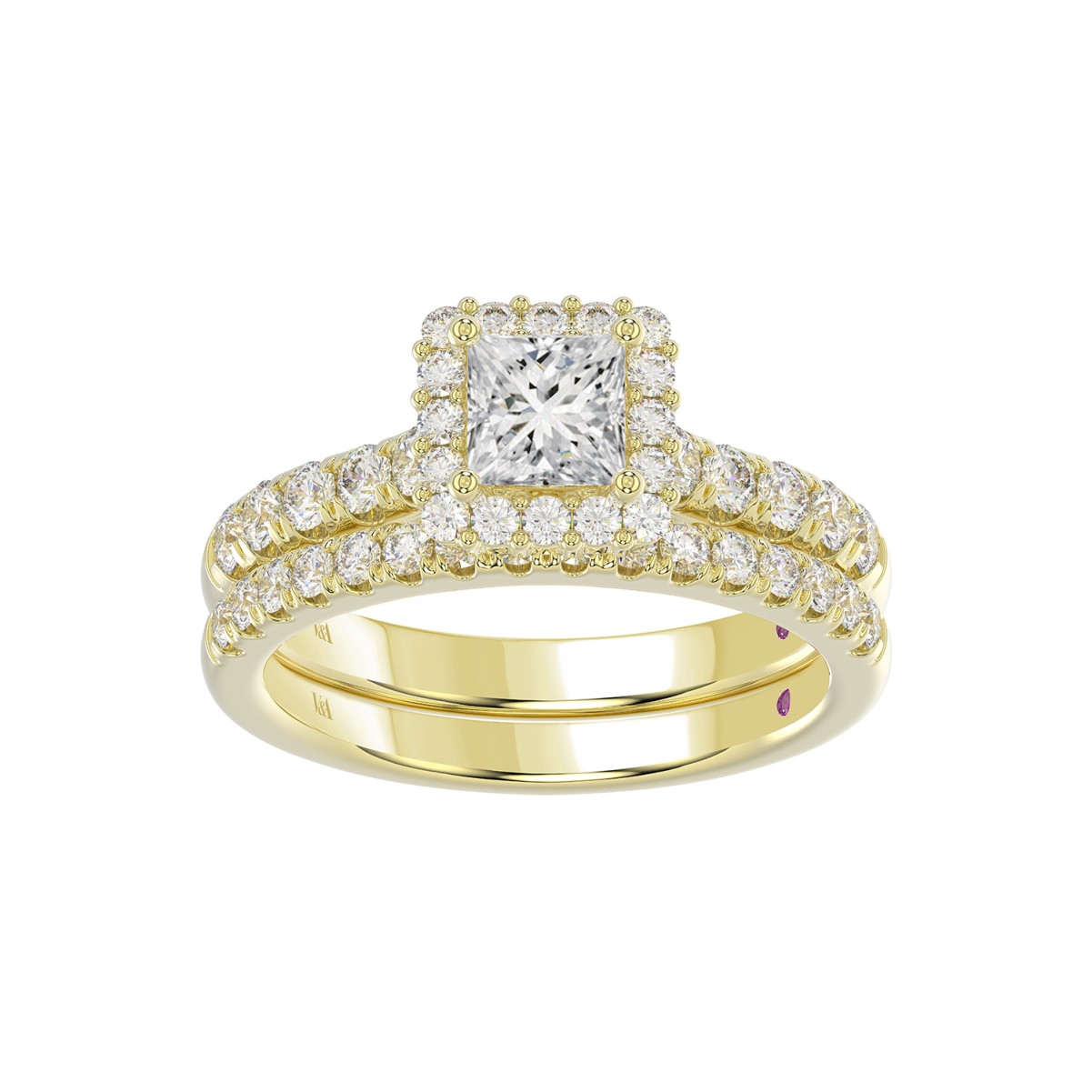 14K YELLOW GOLD 1 5/8CT ROUND/PRINCESS DIAMOND LADIES BRIDAL SET(CENTER STONE PRINCESS DIAMOND 3/4CT)