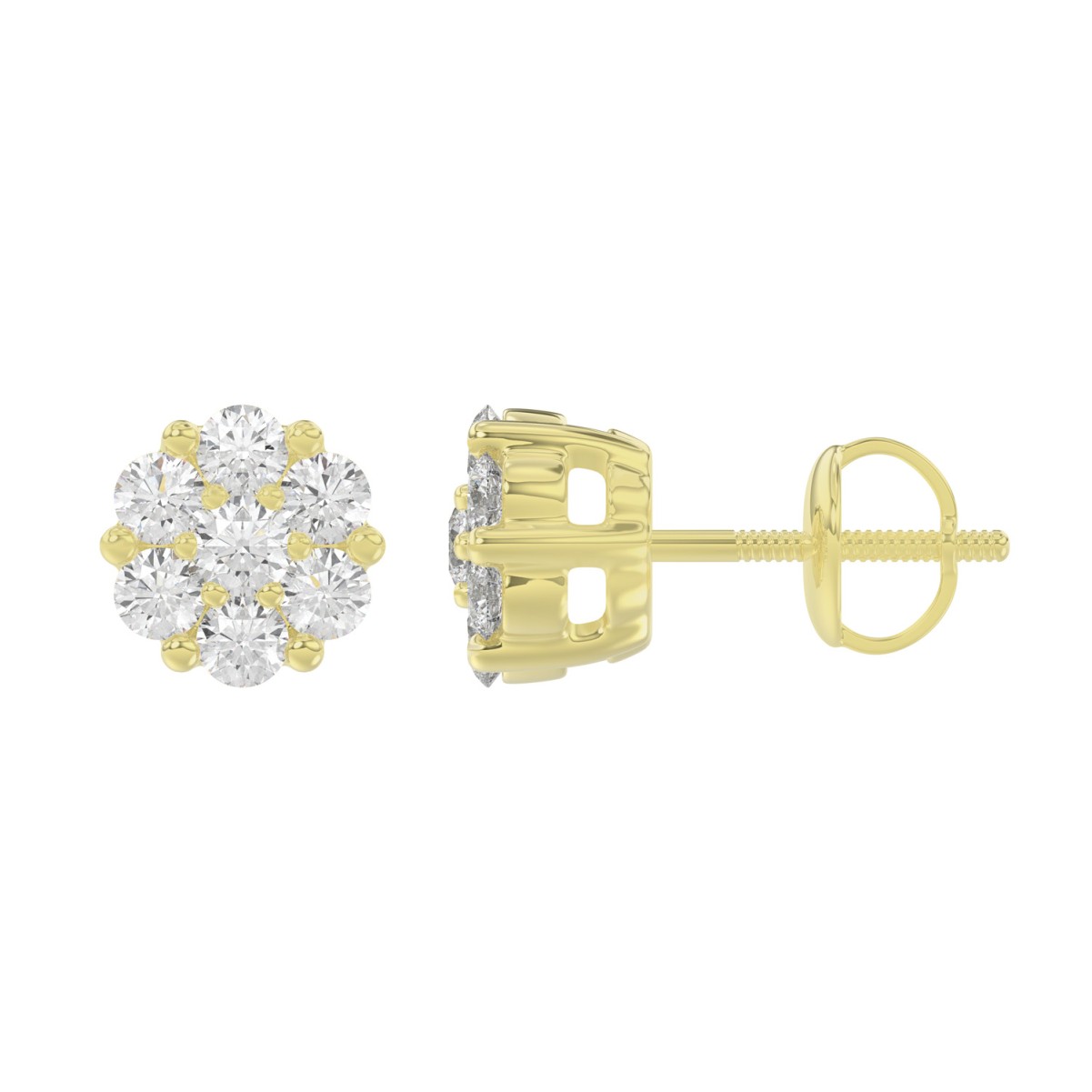 14K YELLOW GOLD 1CT ROUND DIAMOND LADIES FLOWER EARRINGS