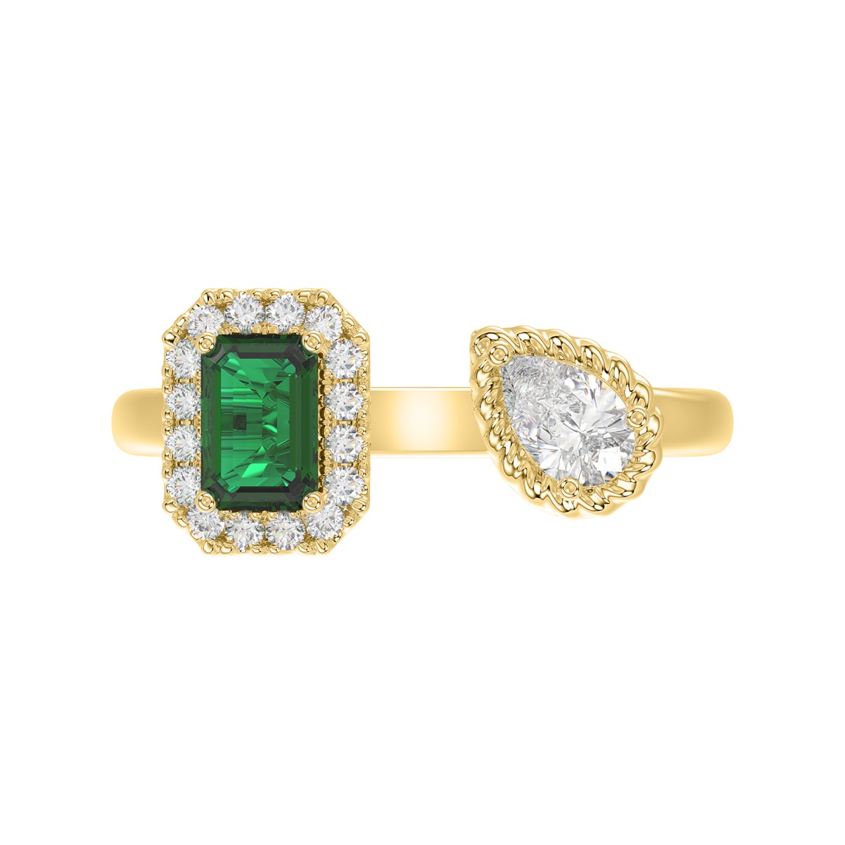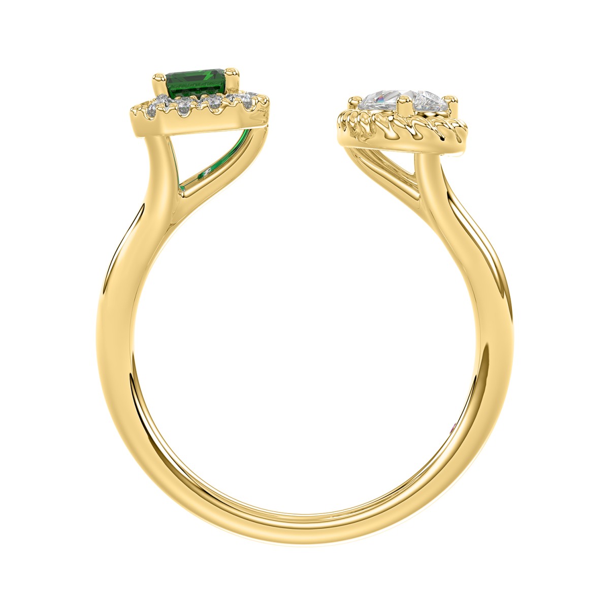 14K YELLOW GOLD 1CT ROUND/EMERALD/PEAR DIAMOND LADIES RING(COLOR STONE GREEN EMERALD DIAMOND 1/4CT)