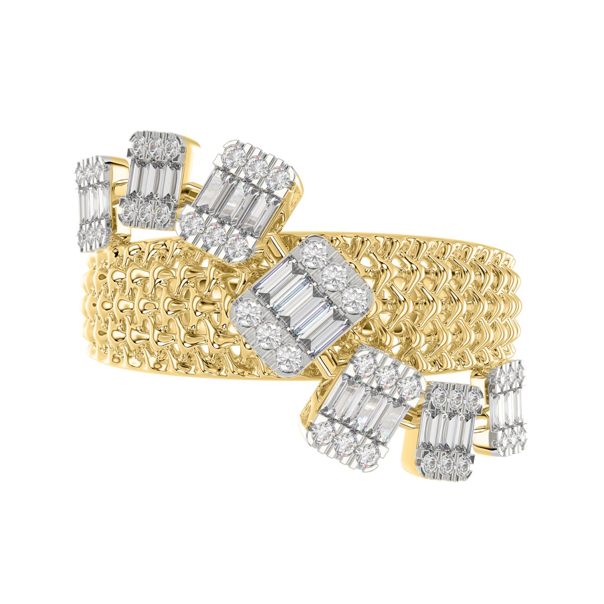 14K YELLOW GOLD 3/4CT ROUND/BAGUETTE DIAMOND LADIES FASHION RING