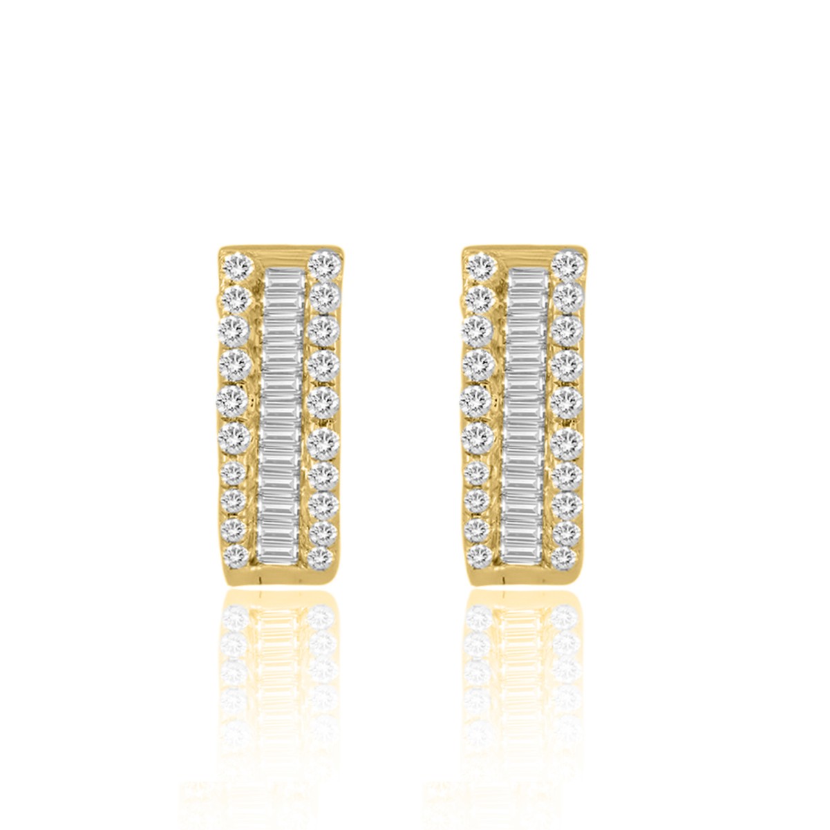 14K YELLOW GOLD 3/8CT ROUND/BAGUETTE DIAMOND LADIES EARRINGS