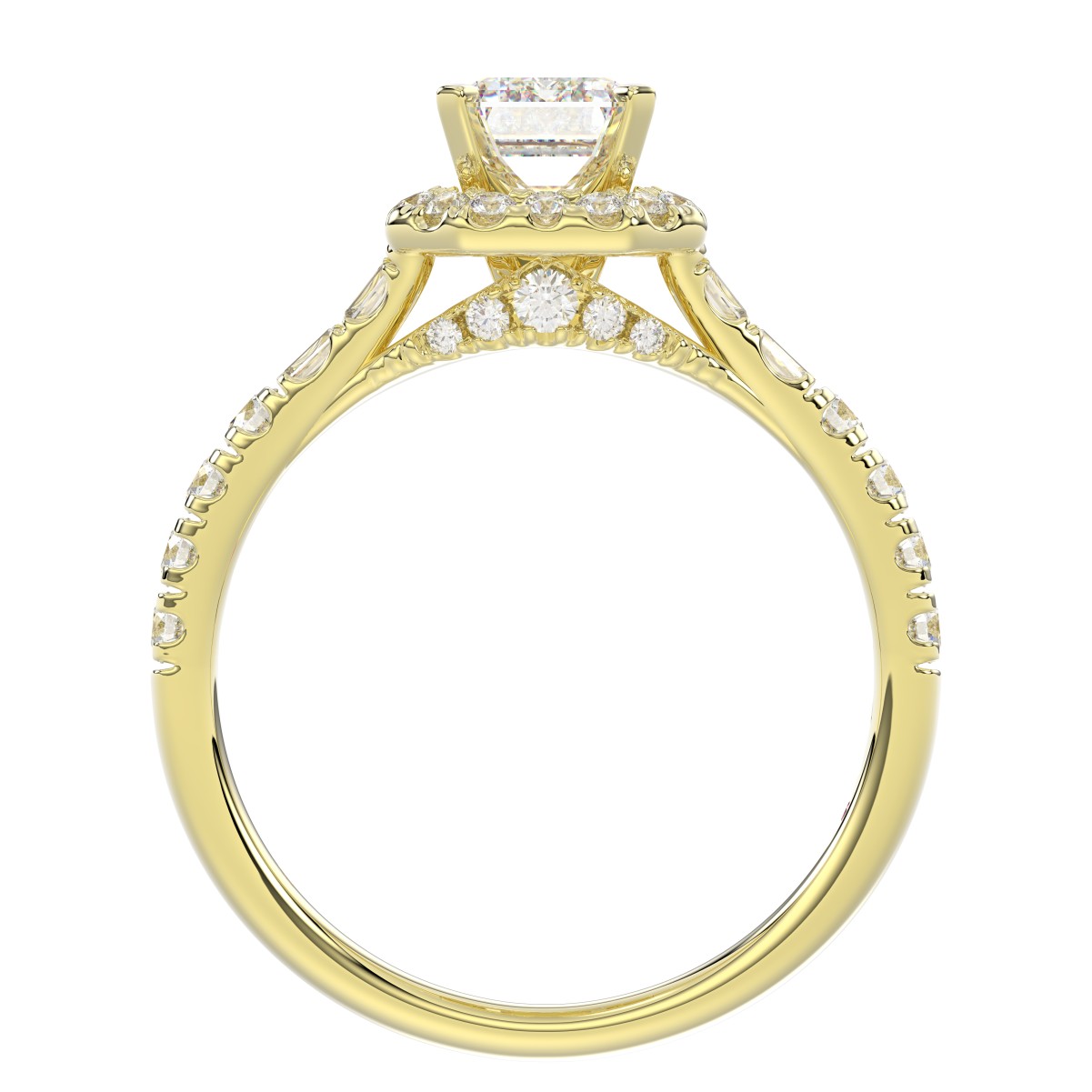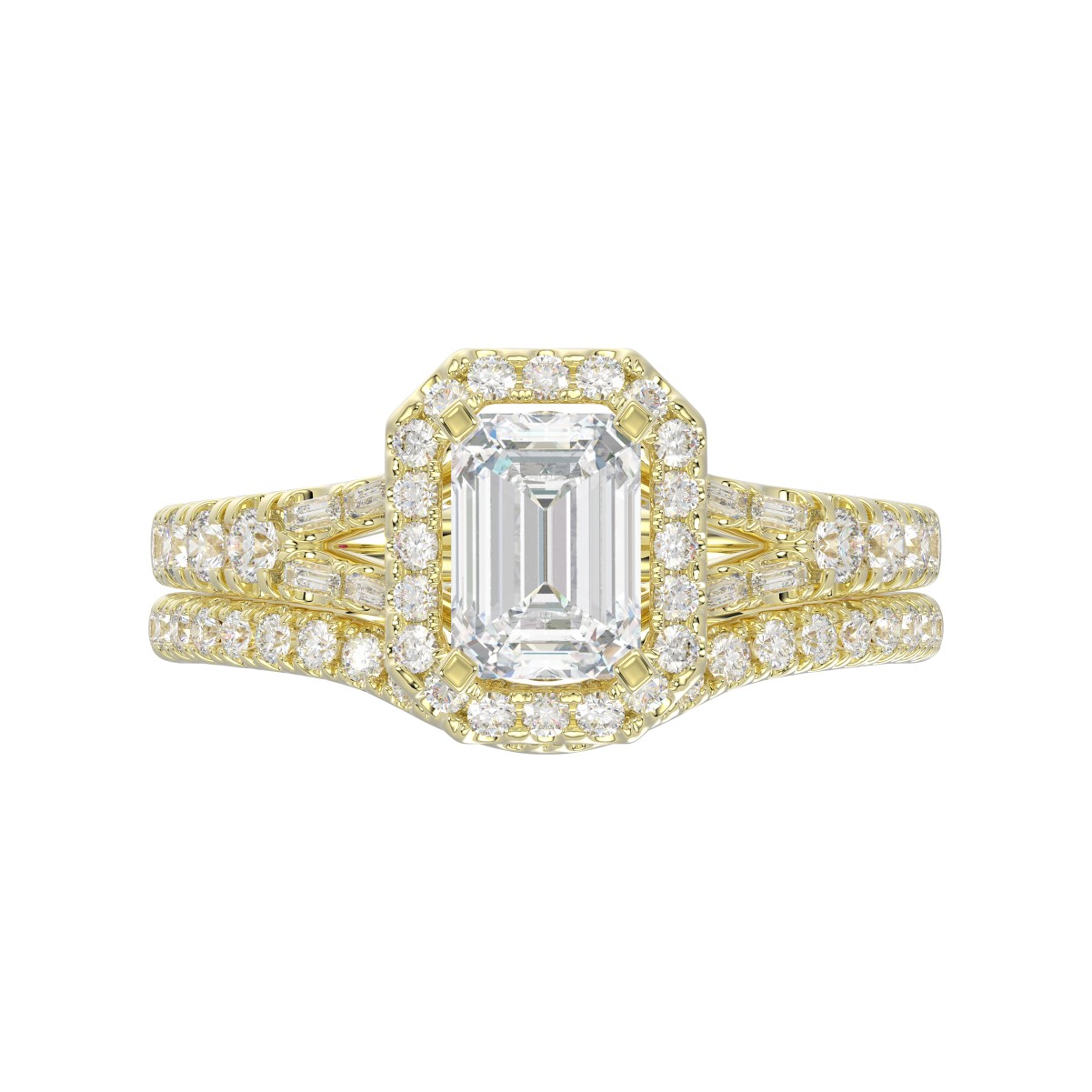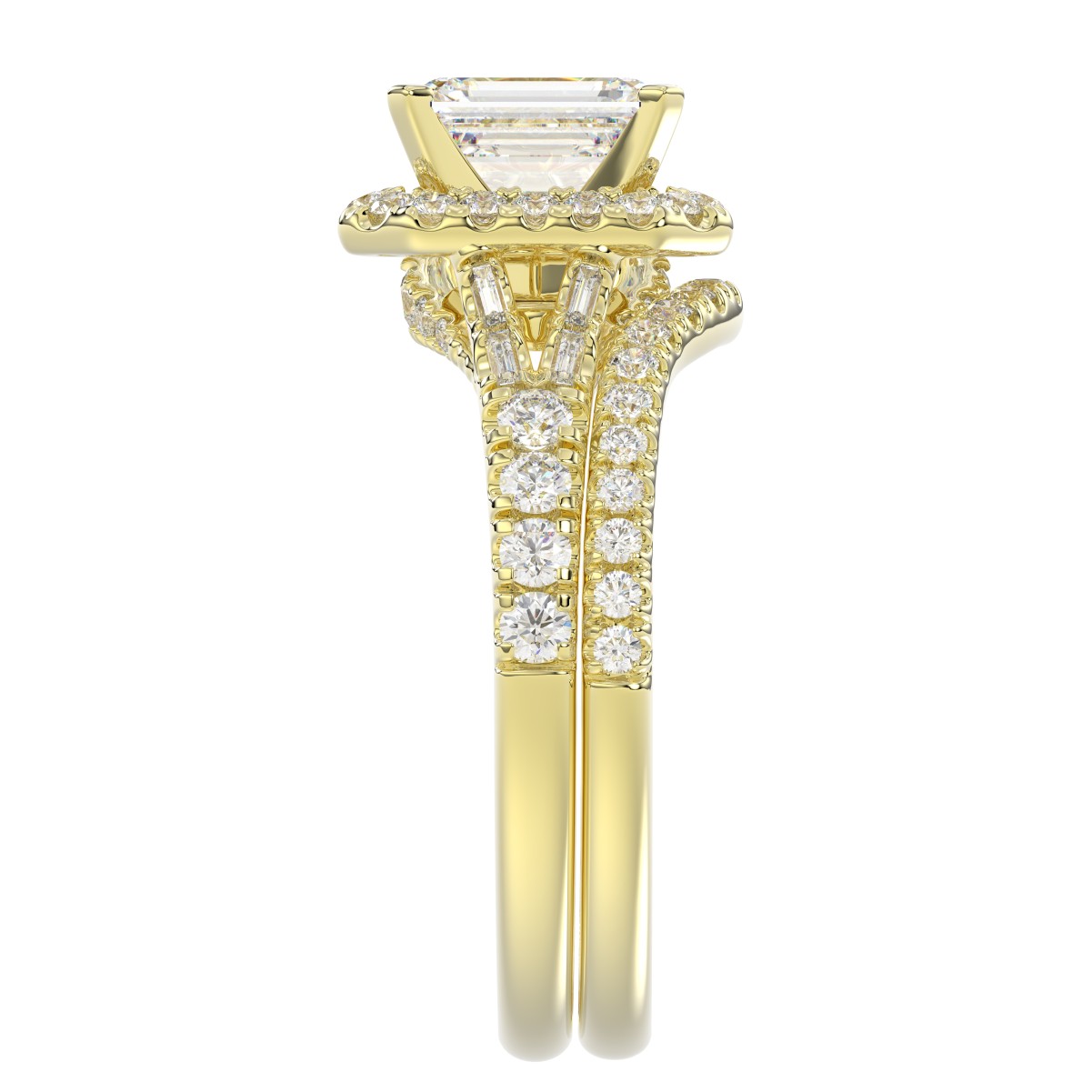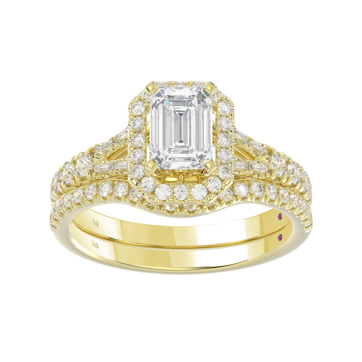 14K YELLOW GOLD 5/8CT ROUND/EMERALD DIAMOND LADIES RING(CENTER STONE MOUNT EMERALD DIAMOND 1CT)