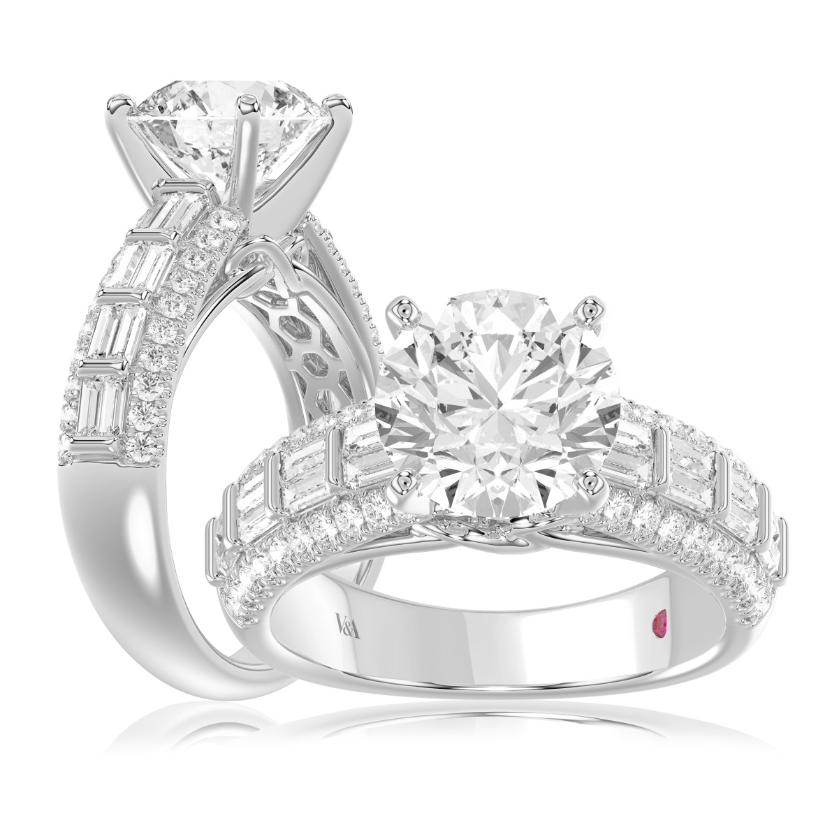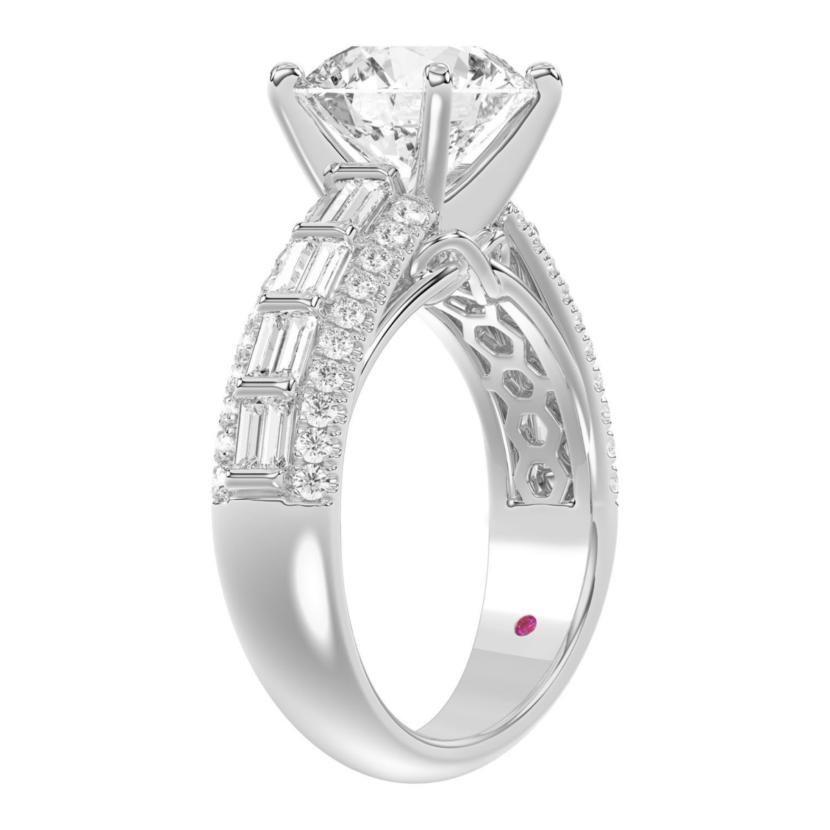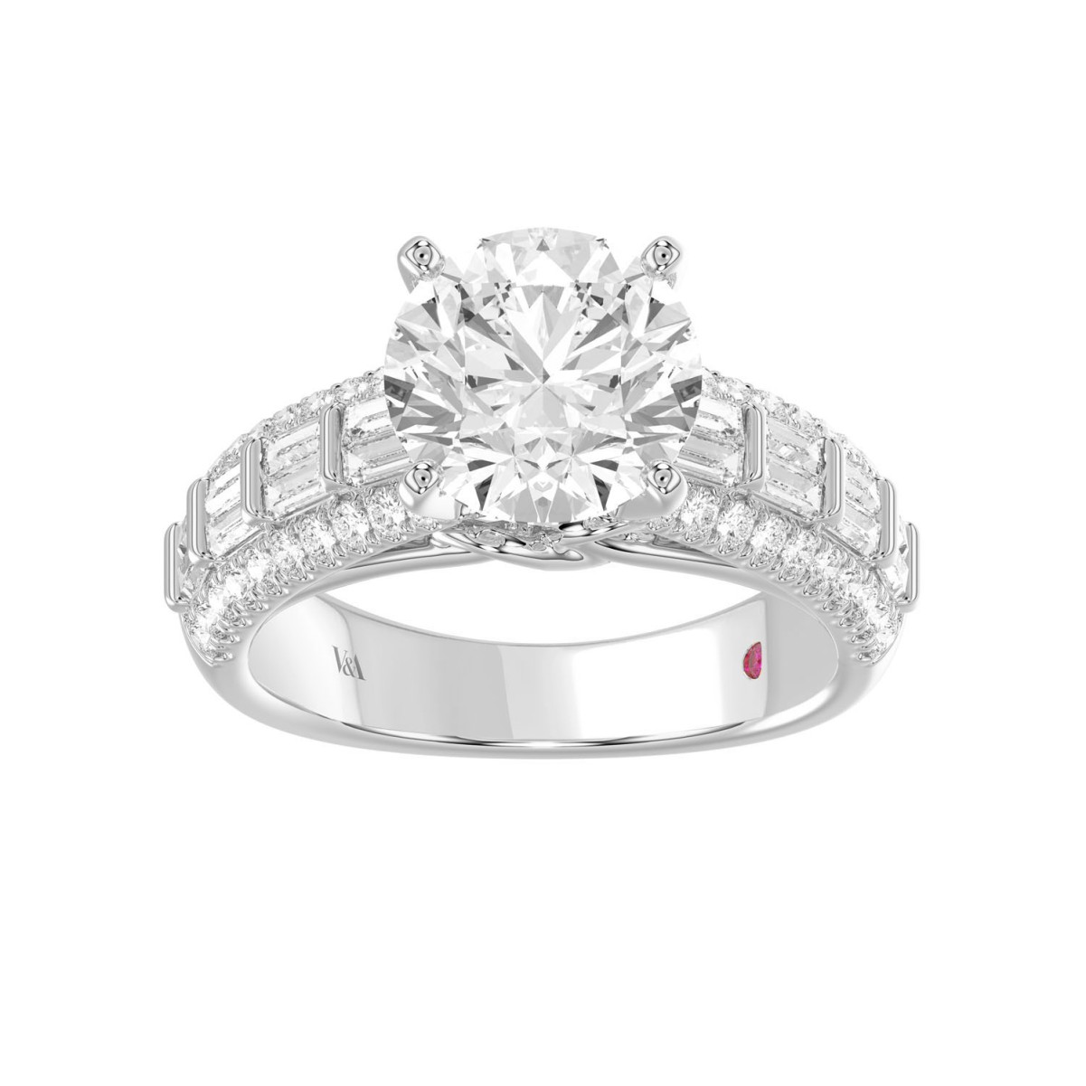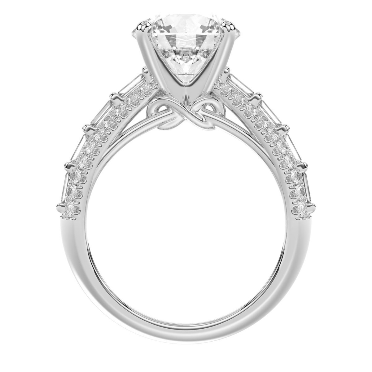 18 K WHITE GOLD 3 3/4CT ROUND/BAGUETTE DIAMOND LADIES SEMI MOUNT RING(CENTER STONE MOUNT ROUND DIAMOND 3CT)