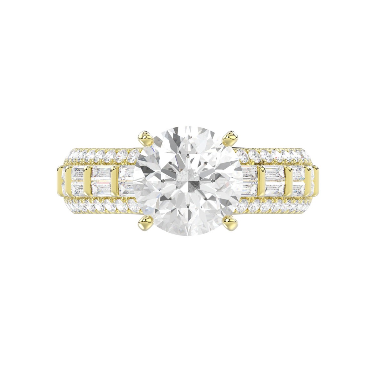 18 K YELLOW GOLD 3 3/4CT ROUND/BAGUETTE DIAMOND LADIES SEMI MOUNT RING(CENTER STONE ROUND DIAMOND 3CT)