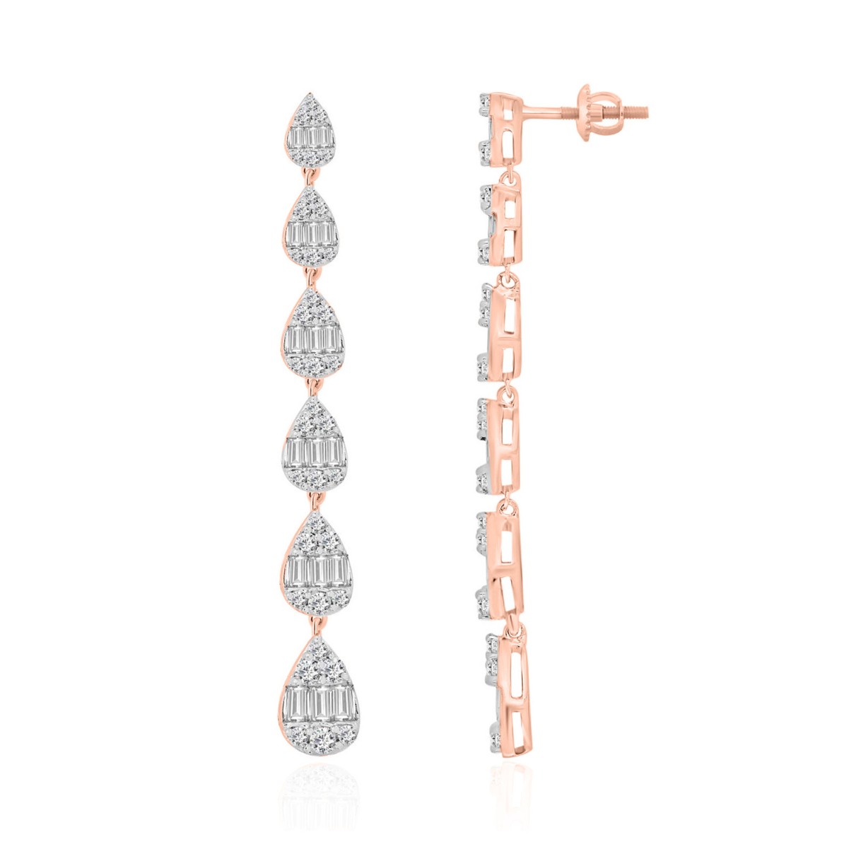 18K ROSE GOLD 1 1/5CT ROUND/BAGUETTE DIAMOND LADIES EARRINGS
