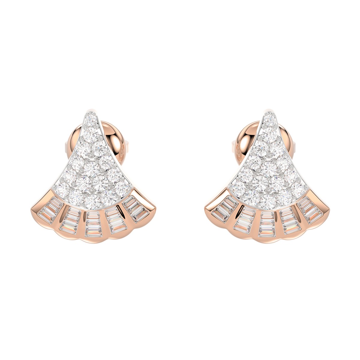18K ROSE GOLD 1/2CT ROUND/BAGUETTE DIAMOND LADIES EARRINGS