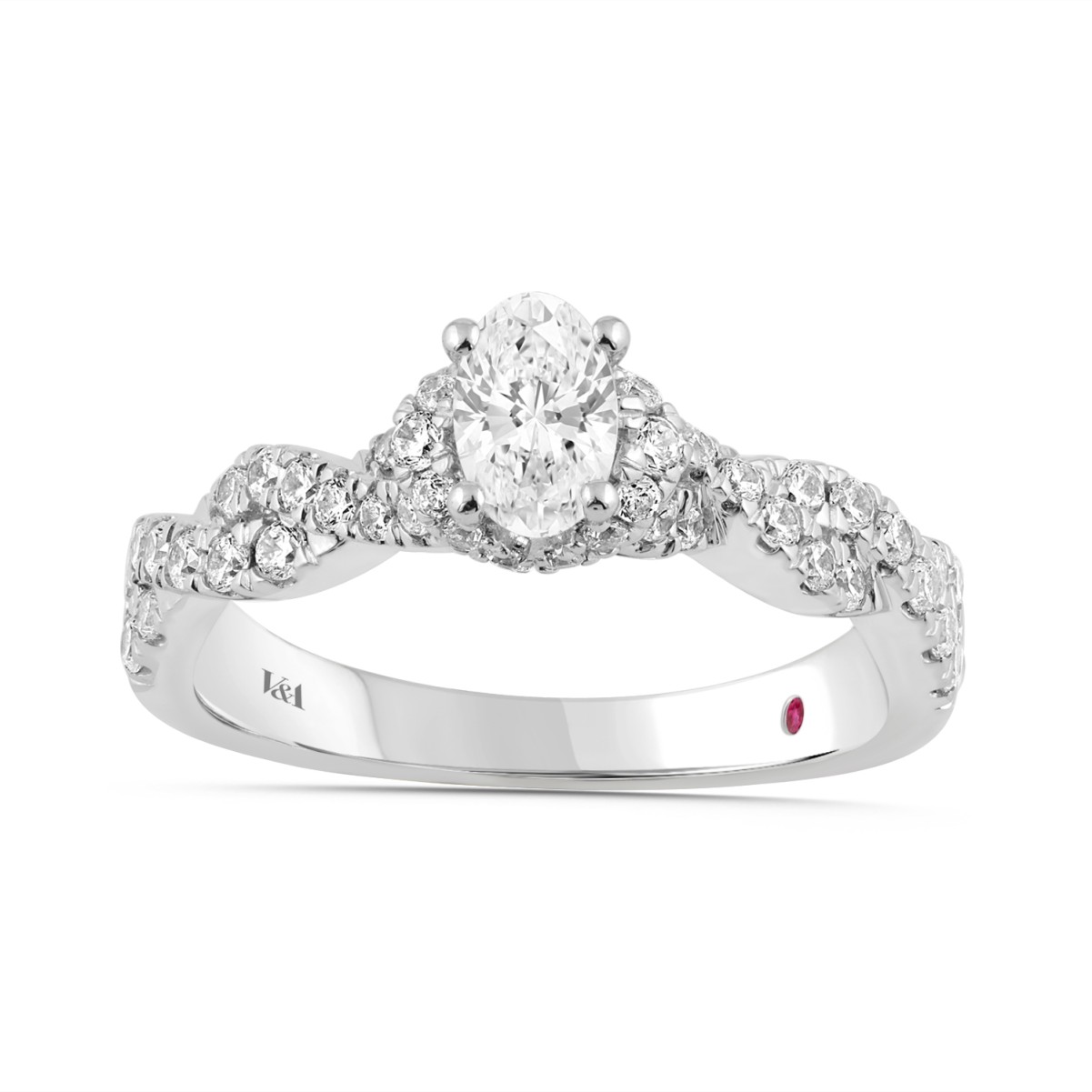 18K WHITE GOLD 1.00CT ROUND/OVAL DIAMOND LADIES RING (CENTER STONE OVAL DIAMOND 1/2CT)