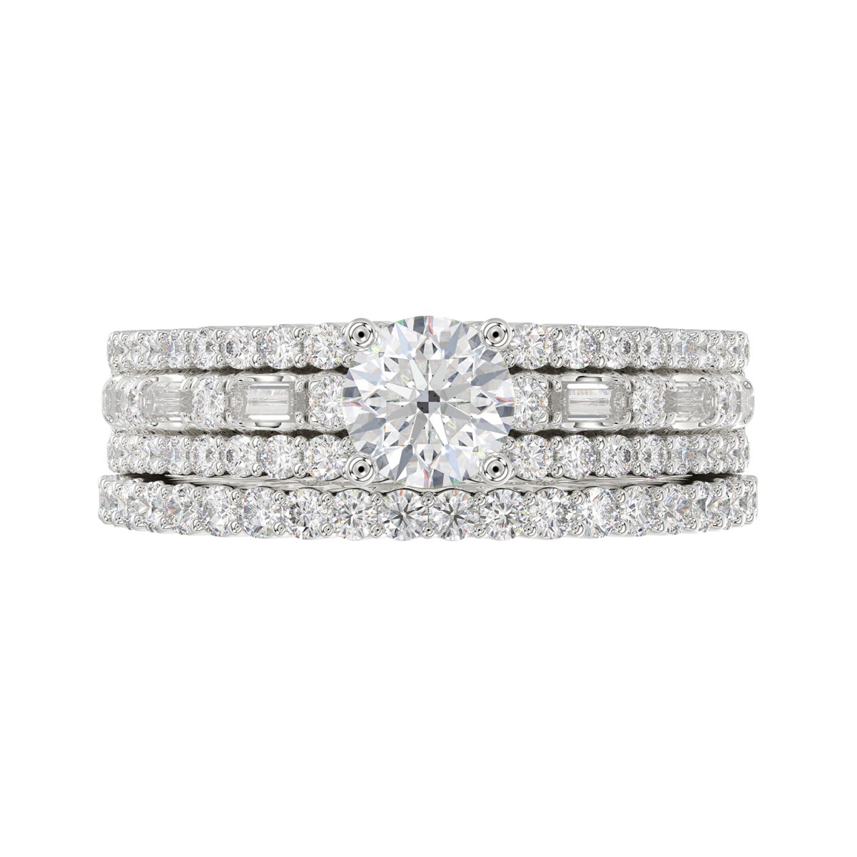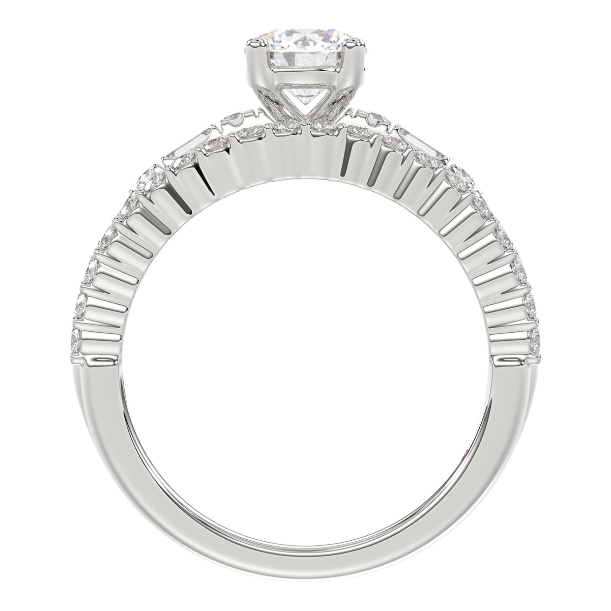 18K WHITE GOLD 1 1/2CT ROUND/BAGUETTE DIAMOND LADIES RING(CENTER STONE ROUND DIAMOND 7/8CT)