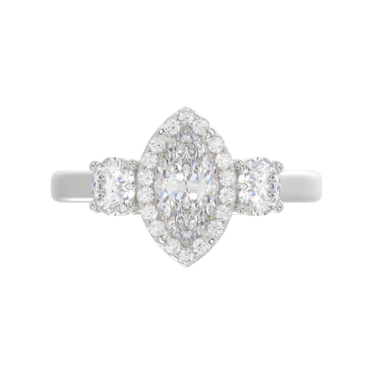18K WHITE GOLD 1 1/2CT ROUND/MARQUISE DIAMOND LADIES RING(CENTER STONE MARQUISE DIAMOND 3/4CT)