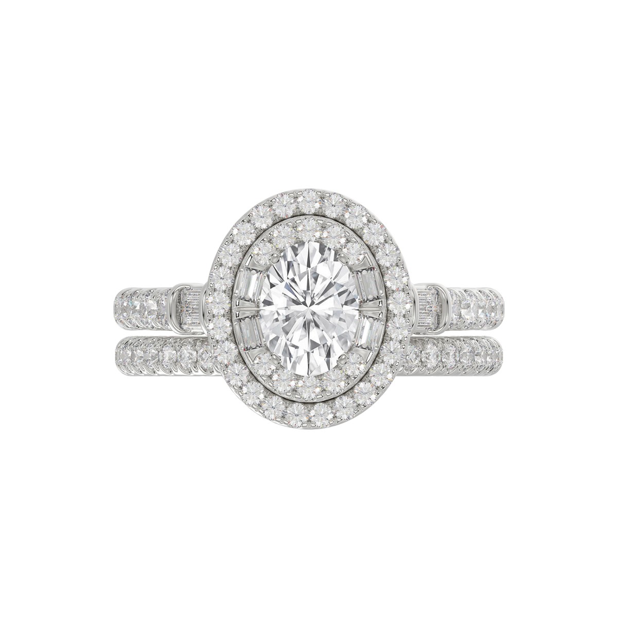 18K WHITE GOLD 1 1/2CT ROUND/OVAL DIAMOND LADIES BRIDAL SET(CENTER STONE OVAL DIAMOND 3/4CT)