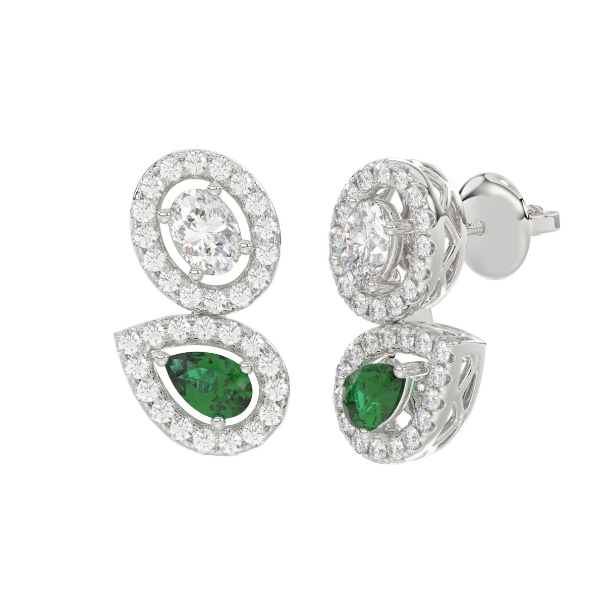 18K WHITE GOLD 1 1/2CT ROUND/OVAL/PEAR DIAMOND LADIES EARRINGS(COLOR STONE GREEN EMERALD PEAR DIAMOND 1/5CT / OVAL DIAMOND 1/4CT)