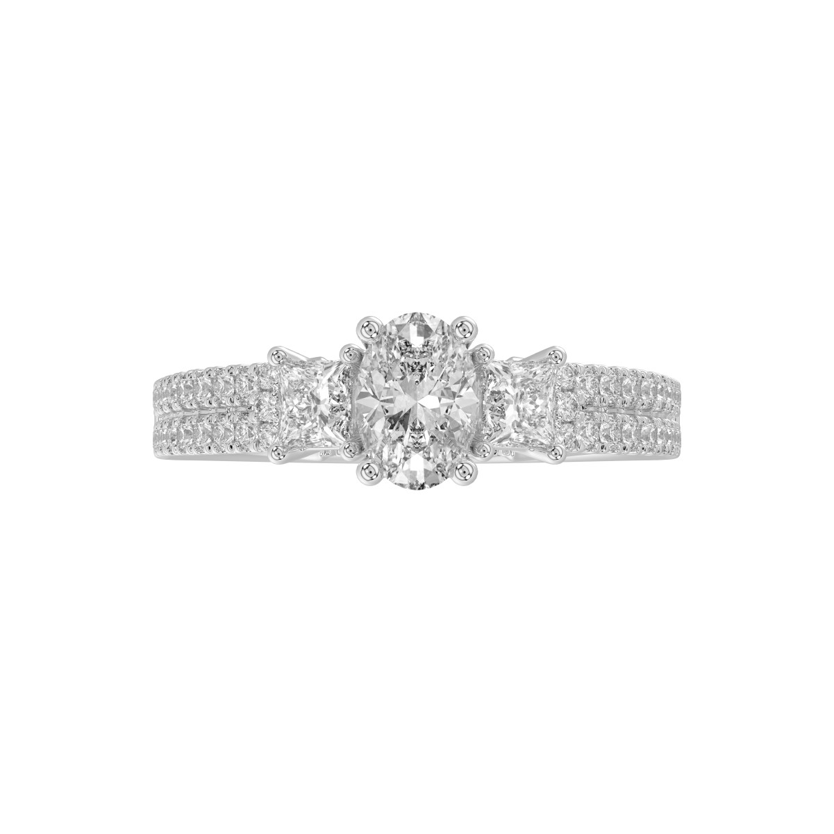 18K WHITE GOLD 1 1/2CT ROUND/PRINCESS/OVAL DIAMOND LADIES RING(CENTER STONE OVAL DIAMOND 3/4CT)