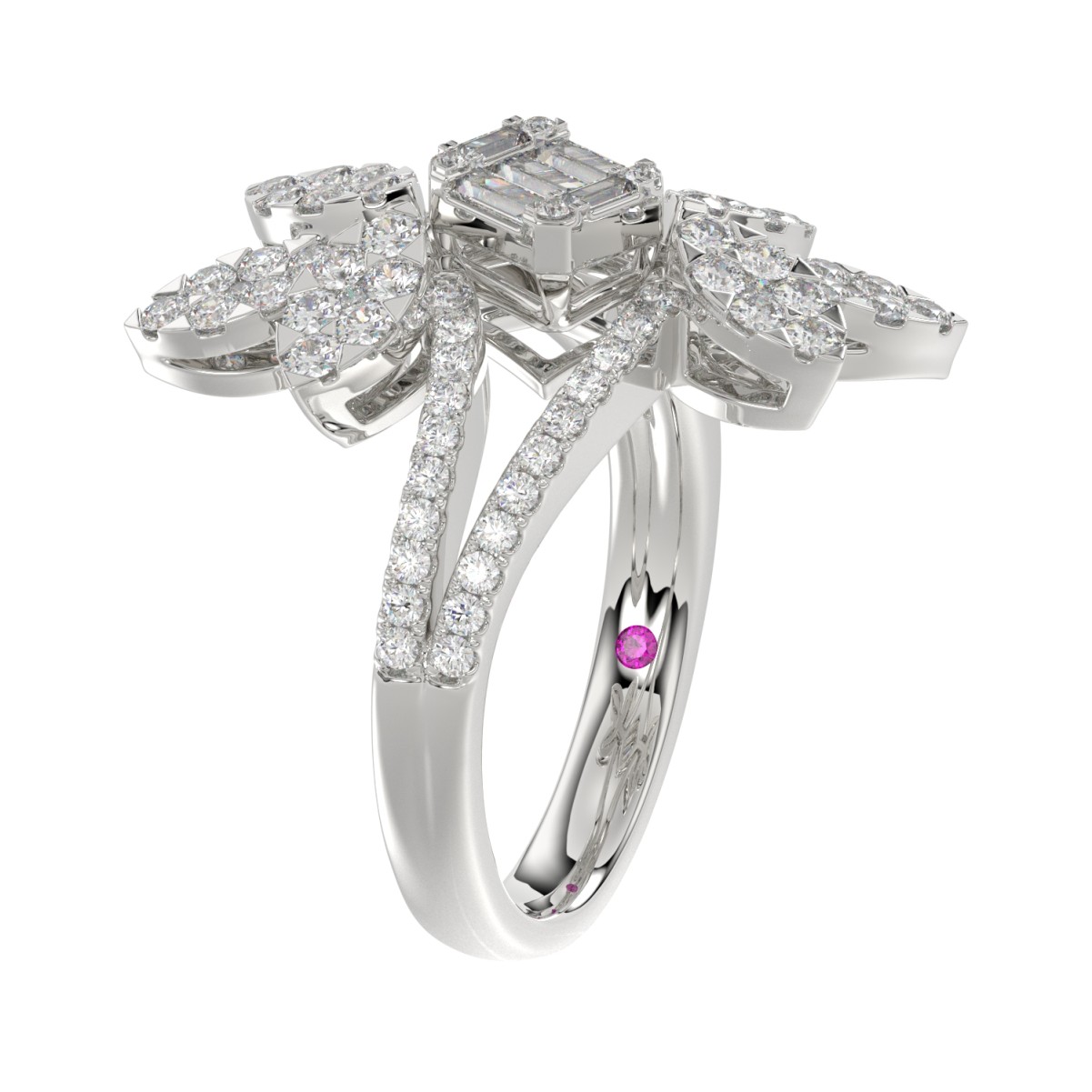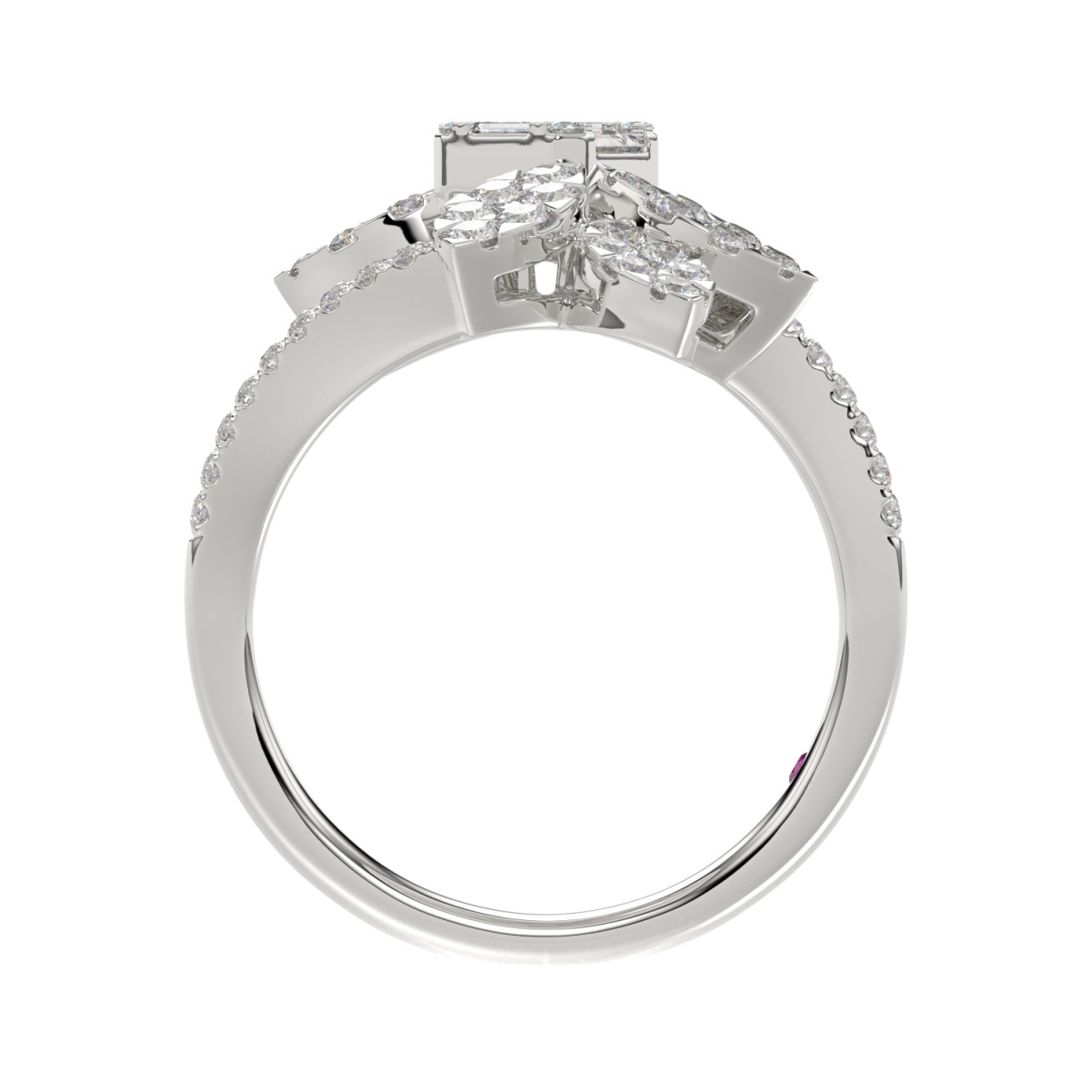 18K WHITE GOLD 1 1/3CT ROUND/BAGUETTE DIAMOND LADIES FASHION RING