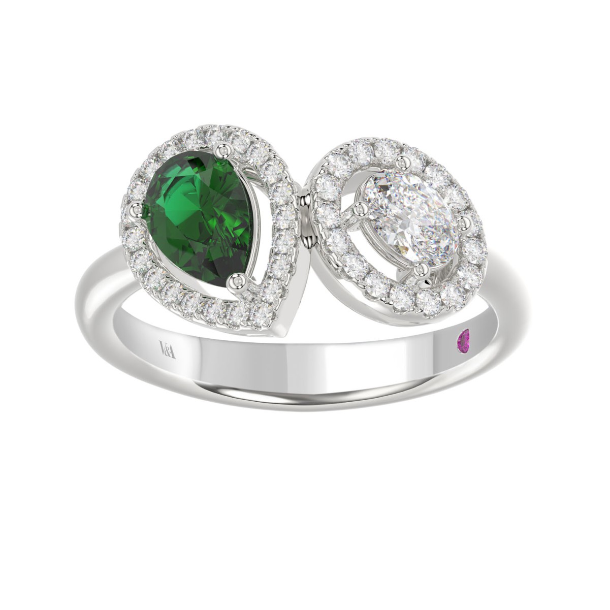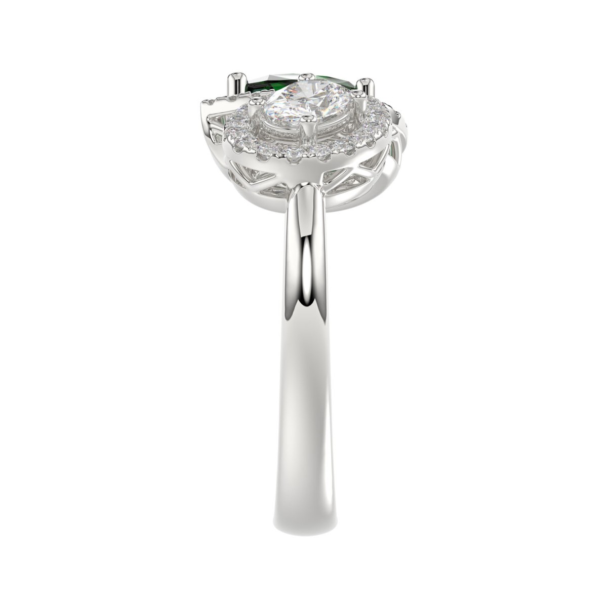 18K WHITE GOLD 1 1/3CT ROUND/PEAR/OVAL DIAMOND LADIES RING(COLOR STONE GREEN EMERALD PEAR DIAMOND 3/4CT / OVAL DIAMOND 1/4CT)