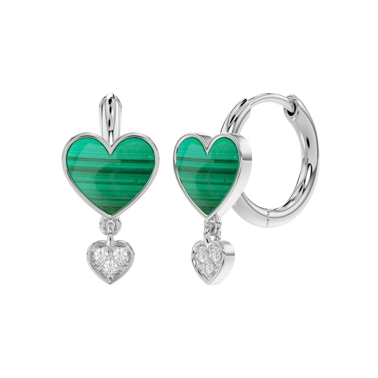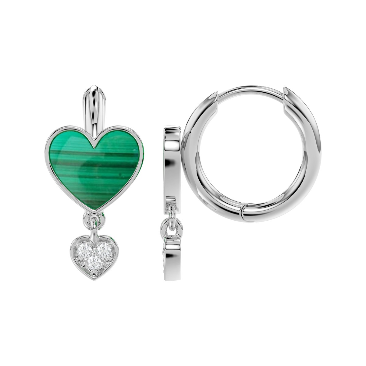 18K WHITE GOLD 1/10CT ROUND DIAMOND MALACHITE LADIES EARRINGS