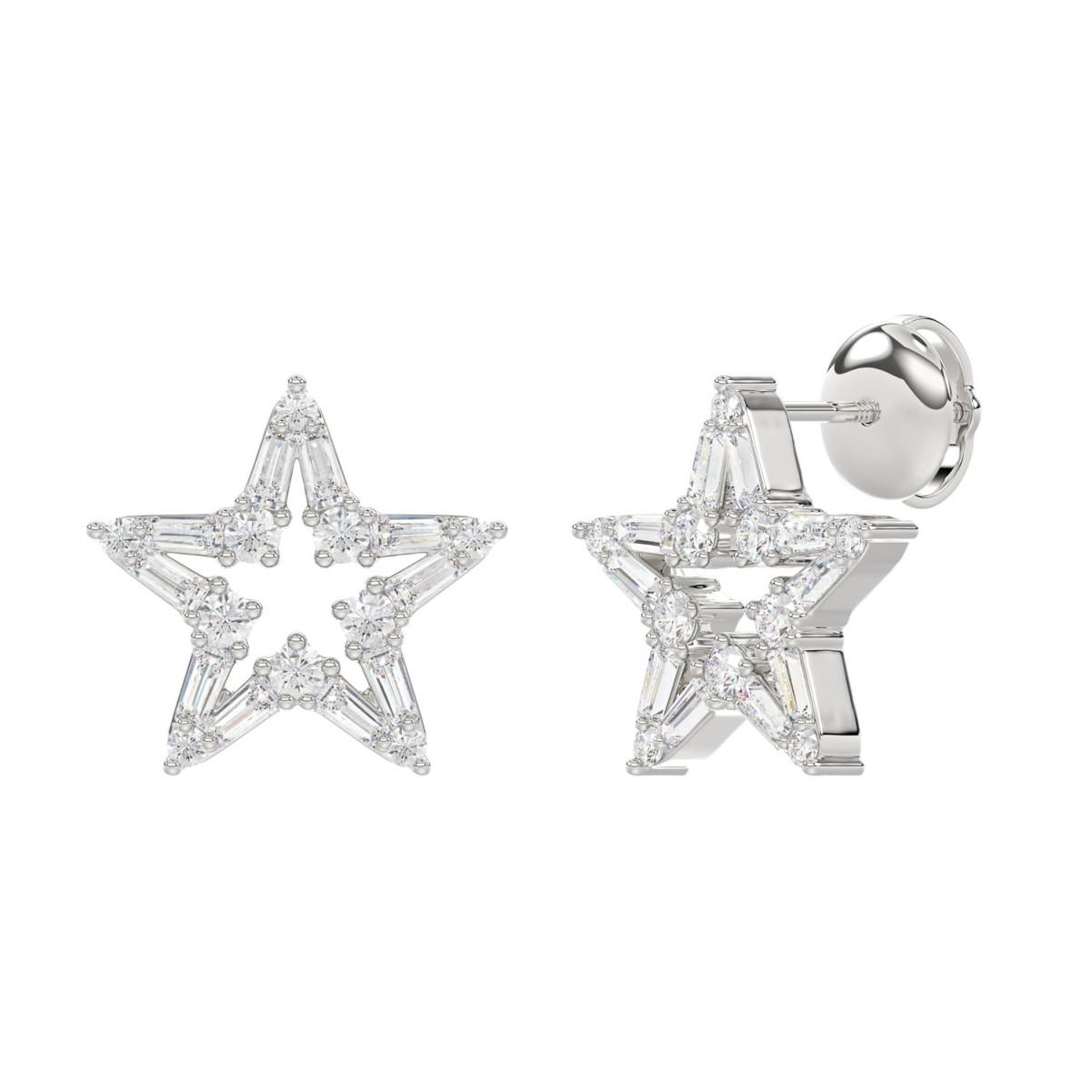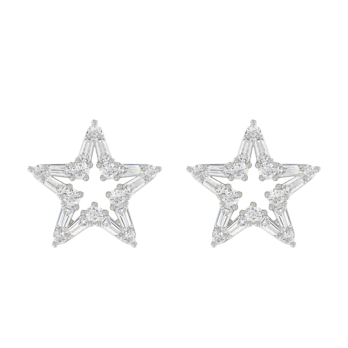 18K WHITE GOLD 1/2CT ROUND/BAGUETTE DIAMOND LADIES EARRINGS